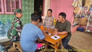 Cimanggung_Sumedang. Bhabinkamtibmas Desa Cimanggung Polsek Cimanggung Polres Sumedang Polda Jabar AIPTU ATO SUGIHARTO dan Babinsa SERKA FAJAR telah melaksanakan kegiatan sambang dan silaturahmi kamtibmas kewarga binaan Dalam rangka pelaksanaan BEYOND TRUST PRESISI. Minggu (13/04/2025). Adapun dalam kegiatan silaturahmi kamtibmas tersebut Bhabinkamtibmas menyampaikan pesan – pesan Kamtibmas kepada lingkungan sekitar, antara lain : • _Agar masyarakat bisa menjaga kesehatan dengan selalu berolahraga dan makan makanan bergizi_ – _Selalu menjaga keamanan dan ketertiban dilingkungan_- _Antisipasi lingkungan warga sekitar terutama yang rawan bencana alam banjir, tanah longsor , kebakaran lahan kosong dan pohon tumbang._- _Apabila ada kejadian atau hal hal yang penting segera melaporkan kepada Polsek terkait, Kepala Desa, Bhabinkamtibmas dan Babinsa._- _Bijak menggunakan media sosial dan filter terkait berita Hoax._Kegiatan berjalan aman dan lancar serta terjalinnya silaturahmi dan bersinergi antara warga masyarakat dengan pihak Polri.(Lia/Humas Polsek Cimanggung)