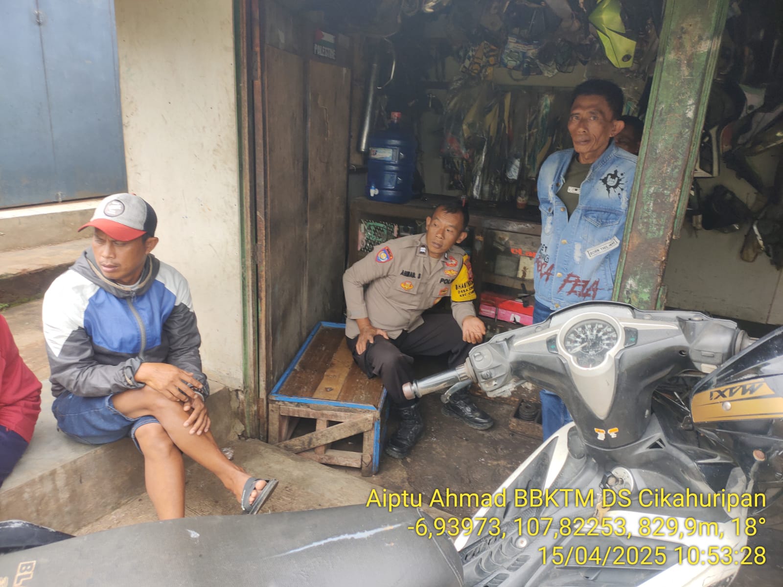 Cimanggung-Sumedang. Bhabinkamtibmas Desa Cikahuripan Polsek Cimanggung Polres Sumedang Polda Jabar AIPTU AHMAD SUBEKTI laksanakan sambangi warga dusun Cikadaton guna monitoring keamanan dan ketertiban masyarakat (kamtibmas). Selasa (15/04/2025). Bhabinkamtibmas Desa Cikahuripan pada pelaksanaan sambang kali ini menyambangi warga Desa Cikahuripan Kecamatan Cimanggung Kabupaten Sumedang yang sedang melaksanaan aktifitas kesehariannya.Pada kesempatan sambang kali ini saat bertemu dengan warga binaan, Bhabinkamtibmas menyampaikan pesan-pesan kamtibmas diantaranya himbauan keamanan dan wajib lapor bagi tamu yang baru datang dan penduduk setempat.Selain itu juga Bhabinkamtibmas menyampaikan kepada warga untuk segera menghubungi dan melaporkan kepada aparat berwenang jika terjadi perkara tindak pidana di wilayahnya.Sementara itu Kapolres Sumedang AKBP JOKO DWI HARSONO, S.I.K., M.Hum. dan Wakapolres Sumedang KOMPOL MEILAWATY, S.H., S.I.K., M.M. melalui Kapolsek Cimanggung KOMPOL KARYAMAN D., S.H., M.H.menyampaikan bahwa berdasarkan penugasannya para personil Bhabinkamtibmas akan senantiasa memantau perkembangan kamtibmas di wilayah desa binaanya, “pungkasnya(Lia/Humas Polsek Cimanggung)