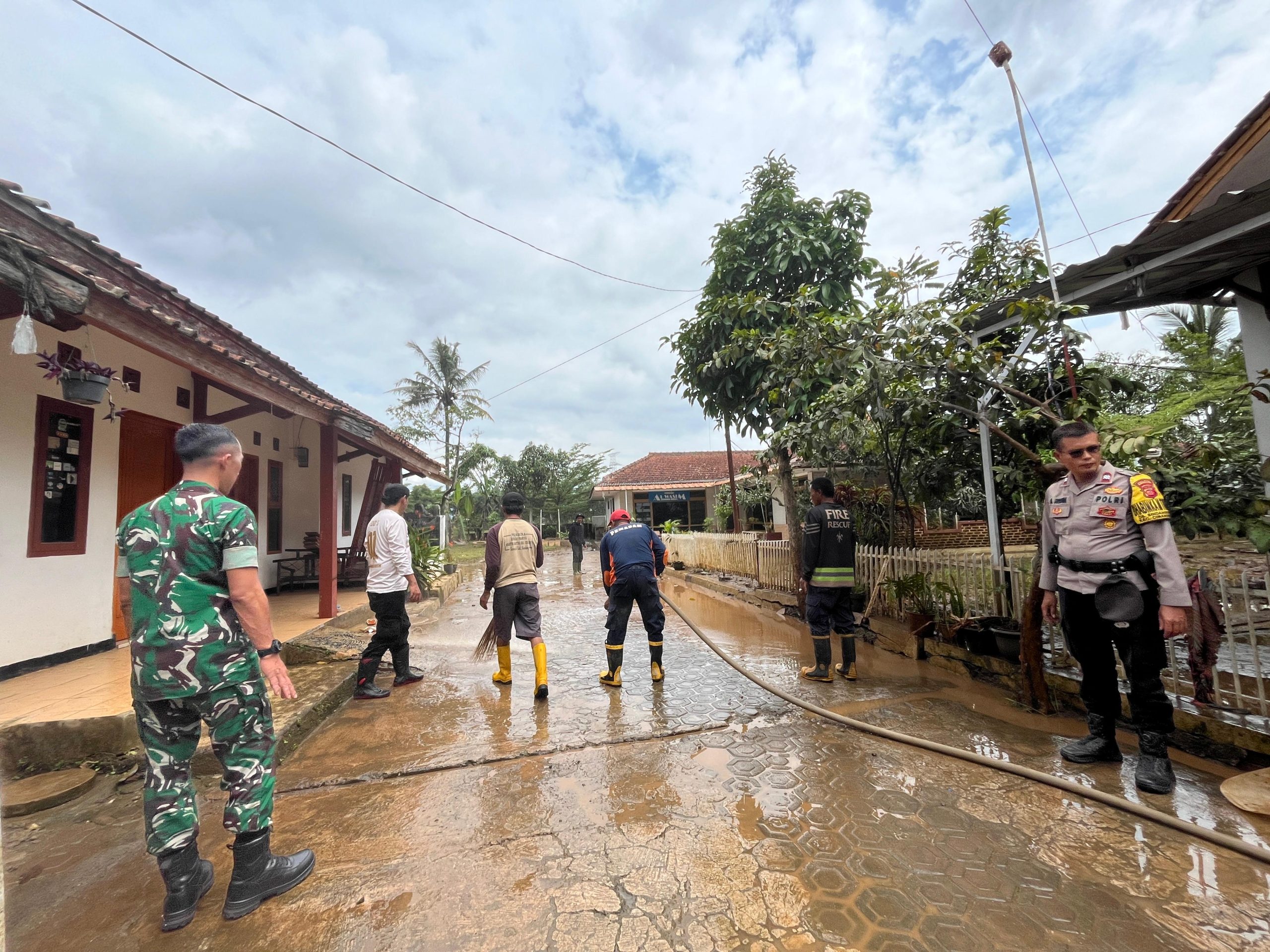 Cimanggung_Sumedang. Bertempat di Wilayah yayasan al-wasim yang berdekatan dengan sungai Cimande dusun bbkn bandung desa Sindanggalih Kecamatan Cimanggung Kabupaten Sumedang.telah dilaksanakan Kegiatan Kerja bakti gabungan semua pihak untuk membersihkan sisa lumpur pasca banjir dengan mendatangkan 1 unit mobil pemadam kebakaran dari Kecamatan tanjung sari sumedang. Selasa (15/04/2025).