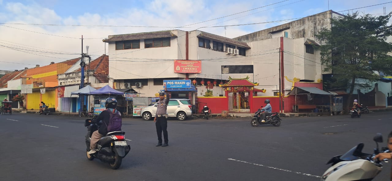 Unit Lalulintas Polsek Pataruman melaksanakan kegiatan pengaturan arus lalu lintas di Simpang 4 Makin Pasar Banjar, dalam rangka antisipasi terjadinya padat kendaraan dan kecelakaan lalu lintas.