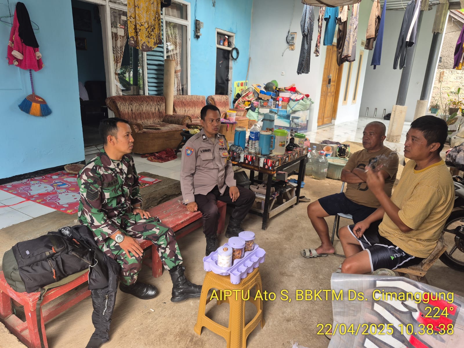Cimanggung_Sumedang. Bhabinkamtibmas Desa Tegalmanggung Polsek Cimanggung Polres Sumedang Polda Jabar BRIPKA ASEP SOPANDI dan Babinsa SERTU ENGKUS telah melaksanakan kegiatan sambang dan silaturahmi kamtibmas kewarga binaan Dalam rangka pelaksanaan BEYOND TRUST PRESISI. Selasa (22/04/2025). Adapun dalam kegiatan silaturahmi kamtibmas tersebut Bhabinkamtibmas menyampaikan pesan – pesan Kamtibmas kepada lingkungan sekitar, antara lain : • _Agar masyarakat bisa menjaga kesehatan sehubungan Musim pancaroba cuaca yang tak menentu_ – _Selalu menjaga keamanan dan ketertiban dilingkungan_- _Antisipasi lingkungan warga sekitar terutama yang rawan bencana alam banjir, tanah longsor , kebakaran lahan kosong dan pohon tumbang._- _Apabila ada kejadian atau hal hal yang penting segera melaporkan kepada Polsek terkait, Kepala Desa, Bhabinkamtibmas dan Babinsa._- _Bijak menggunakan media sosial dan filter terkait berita Hoax._Kegiatan berjalan aman dan lancar serta terjalinnya silaturahmi dan bersinergi antara warga masyarakat dengan pihak Polri.(Lia/Humas Polsek Cimanggung)