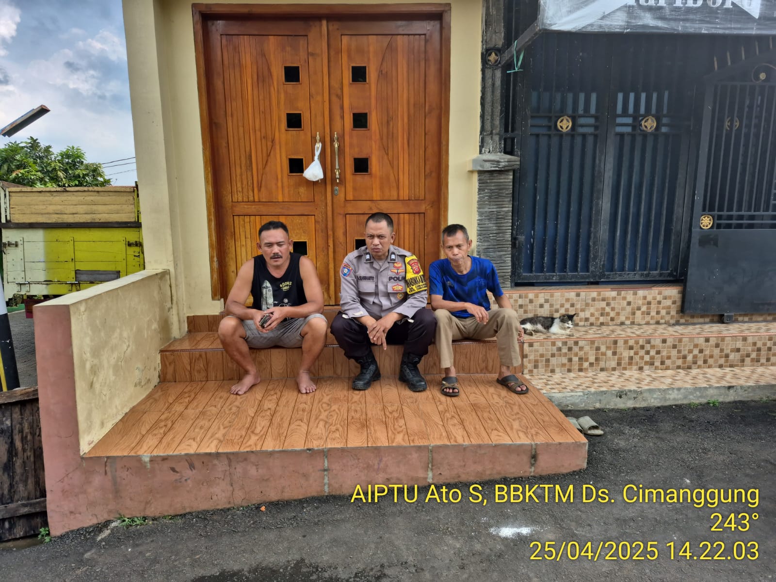 Cimanggung_Sumedang. Dalam rangka mempererat tali silaturahmi antara warga masyarakat binaan dengan bhabinkamtibmas Desa Cimanggung Polsek Cimanggung Polres Sumedang Polda Jabar AIPDA ATO SUGIARTO melaksanakan giat sambang ke warga Desa Cimanggung Kecamatan Cimanggung Kabupaten Sumedang. Jum’at (25/04/2025). Kegiatan tersebut di laksanakan untuk berperan aktif membantu dan menjaga situasi kamtibmas di Desa Cimanggung Kecamatan Cimanggung Kabupaten Sumedang.Kapolres Sumedang AKBP JOKO DWI HARSONO, S.I.K., M.Hum. melalui kapolsek Cimanggung KOMPOL KARYAMAN D., S.H., M.H. mengatakan ”Anggota bhabinkamtibmas Desa Cimanggung Polsek Cimanggung Polres Sumedang Polda Jabar melaksanakan kegiatan rutin sambang sekaligus silaturahmi agar mendekatkan diri kepada warga masyarakat wilayah desa Cimanggung.”“Selain itu anggota bhabinkamtibmas juga wajib memberikan pengarahan dan edukasi kamtibmas,mempererat Tali silaturahmi, menyampaikan pesan kamtibmas, monitoring situasi kamtibmas, monitoring penerapan prokes dan mengajak warga masyarakat untuk senantiasa menjaga kondusifitas dan keamanan di lingkungannya masing-masing,” Pungkas Kapolsek Cimanggung.