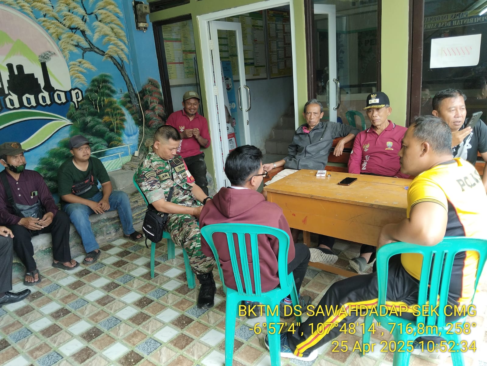 Cimanggung_Sumedang. Bertempat di kantor Desa Sawahdadap Kecamatan Cimanggung Kabupaten Sumedang. Bhabinkamtibmas Sawahdadap Polsek Cimanggung Polres Sumedang Polda Jabar Aiptu Deni Rohmana bersama Babinsa Serka Asep Tedi telah melaksanakan kegiatan silaturahmi kamtibmas dengan Program Jum’at Curhat dengan warga masyarakat di wilayah Desa Sawahdadap, Jum’at (25/04/2025). Kegiatan tersebut bertujuan kontrol keamanan dan memberikan himbauan kepada warga masyarakat, antara lain :▪︎ Warga agar rutin melaksanakan kegiatan ronda malam untuk menjaga keamanan lingkungannya.▪︎ Antisipasi C 3 (curat, curas dan curanmor) di wilayah Ds. Sawahdadap, dan mengingatkan warga lainnya agar selalu waspada.▪︎ Selalu waspada di lingkungan warga sekitar terutama yang rawan bencana alam tanah longsor, banjir, angin puting beliung dan pohon tumbang.▪︎ Jangan mudah percaya terhadap berita bohong/hoax yang belum pasti kebenarannya.▪︎ Apabila ada kejadian atau terdapat gangguan kamtibmas, segera melaporkan kepada Bhabinkamtibmas/Babinsa.Kegiatan berjalan aman, terjalin silaturahmi antara Bhabinkamtibmas, Babinsa dan warga masyarakat.(Lia/Humas Polsek Cimanggung)