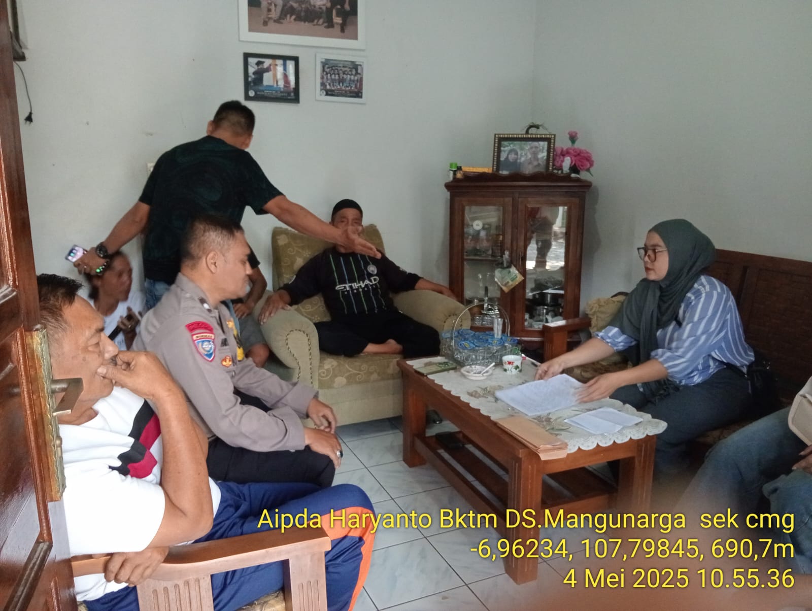Cimanggung_Sumedang. Dalam rangka mempererat tali silaturahmi antara warga masyarakat binaan dengan bhabinkamtibmas Desa Mangunarga AIPDA HARYANTO melaksanakan giat sambang ke warga Desa Mangunarga Kecamatan Cimanggung Kabupaten Sumedang. Minggu (04/05/2025). Kegiatan tersebut di laksanakan untuk berperan aktif membantu dan menjaga situasi kamtibmas di Desa Mangunarga Kecamatan Cimanggung Kabupaten Sumedang.Kapolresta Sumedang AKBP JOKO DWI HARSONO, S.I.K., M.Hum. melalui kapolsek Cimanggung KOMPOL KARYAMAN D., S.H., M.H. mengatakan ” Anggota bhabinkamtibmas Desa Mangunarga melaksanakan kegiatan rutin sambang sekaligus silaturahmi agar mendekatkan diri kepada warga masyarakat wilayah desa Mangunarga.“Selain itu anggota bhabinkamtibmas juga wajib memberikan pengarahan dan edukasi kamtibmas,mempererat Tali silaturahmi, menyampaikan pesan kamtibmas, monitoring situasi kamtibmas, monitoring penerapan prokes dan mengajak warga masyarakat untuk senantiasa menjaga kondusifitas dan keamanan di lingkungannya masing-masing,” Pungkas Kapolsek Cimanggung.(Lia/Humas Polsek Cimanggung)
