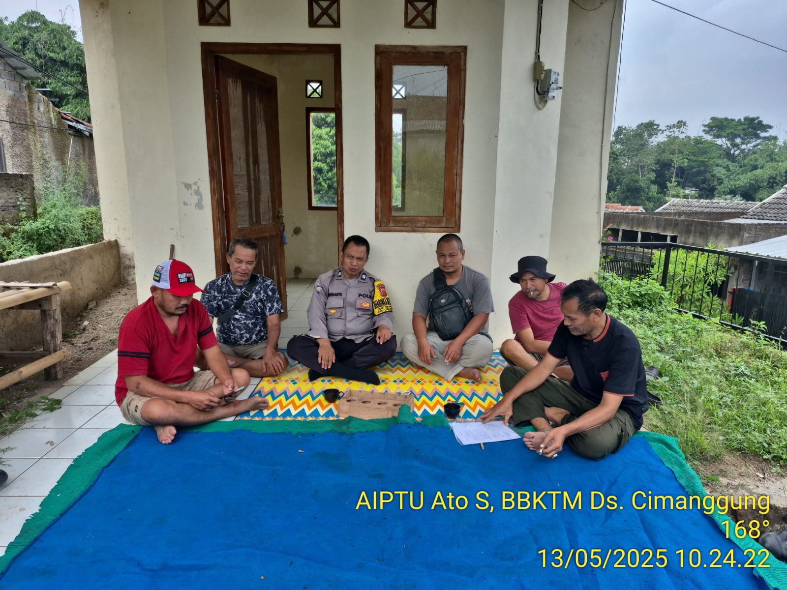 Cimanggung_Sumedang. Dalam rangka mempererat tali silaturahmi antara warga masyarakat binaan dengan bhabinkamtibmas Desa Cimanggung Polsek Cimanggung Polres Sumedang Polda Jabar AIPDA ATO SUGIARTO melaksanakan giat sambang ke warga Desa Cimanggung Kecamatan Cimanggung Kabupaten Sumedang. Selasa (13/05/2025). Kegiatan tersebut di laksanakan untuk berperan aktif membantu dan menjaga situasi kamtibmas di Desa Cimanggung Kecamatan Cimanggung Kabupaten Sumedang.Kapolres Sumedang AKBP JOKO DWI HARSONO, S.I.K., M.Hum. melalui kapolsek Cimanggung KOMPOL KARYAMAN D., S.H., M.H. mengatakan ”Anggota bhabinkamtibmas Desa Cimanggung Polsek Cimanggung Polres Sumedang Polda Jabar melaksanakan kegiatan rutin sambang sekaligus silaturahmi agar mendekatkan diri kepada warga masyarakat wilayah desa Cimanggung.”“Selain itu anggota bhabinkamtibmas juga wajib memberikan pengarahan dan edukasi kamtibmas,mempererat Tali silaturahmi, menyampaikan pesan kamtibmas, monitoring situasi kamtibmas, monitoring penerapan prokes dan mengajak warga masyarakat untuk senantiasa menjaga kondusifitas dan keamanan di lingkungannya masing-masing,” Pungkas Kapolsek Cimanggung.(Lia/Humas Polsek Cimanggung)