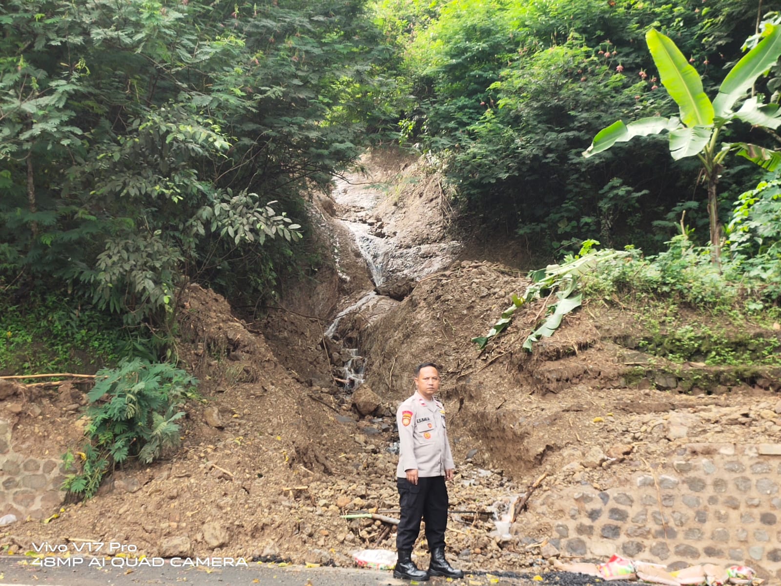 Majalengka – Pasca terjadinya bencana alam tanah longsor beberapa waktu lalu, Polsek Cikijing Polres Majalengka Polda Jabar melalui Ps. Panit Samapta l Aiptu Eman Subagja secara intensif melaksanakan patroli di Jalur Cikijing – Kuningan tepatnya di Blok Cipadung Desa Sindangpanji, Kecamatan Cikijing, Kabupaten Majalengka, Senin (19/05/2025).