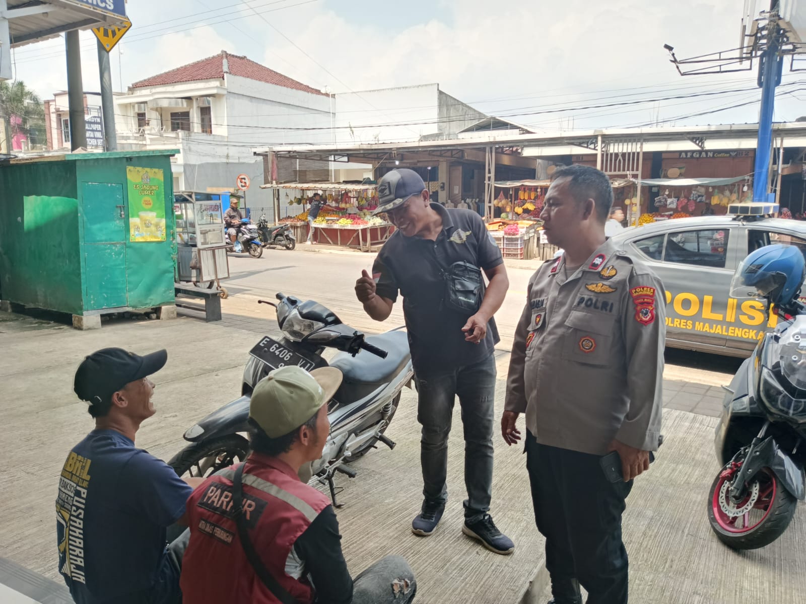 Majalengka – Polsek Cikijing Polres Majalengka Polda Jabar, melalui Ps. Panit Samapta I Aiptu Eman Subagja melaksanakan patroli dialogis dan memberikan Binluh kepada petugas parkir di Desa Cikijing guna menyampaikan imbauan kamtibmas dan antisipasi C3 (Curat, Curas, dan Curanmor), Rabu (21/05/2025).