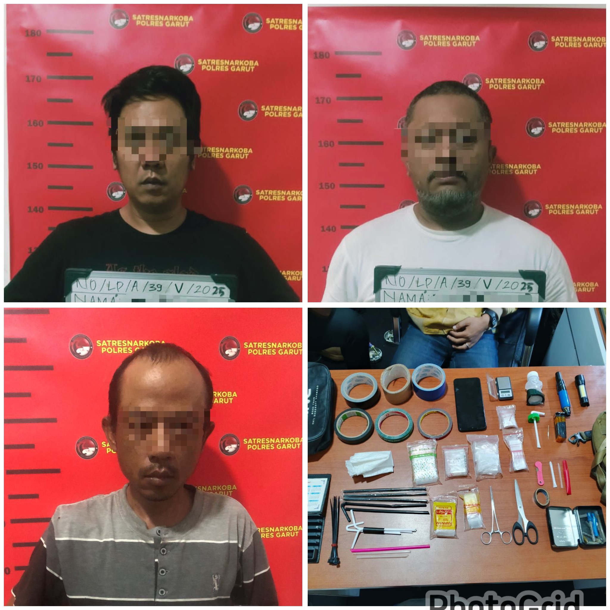 Kapolres Garut melalui Kasat Narkoba AKP Usep Sudirman, S.H. mengatakan bawah ketiga pelaku yakni TF (42), GW (38), dan RE (42), ditangkap setelah polisi melakukan pengembangan berdasarkan laporan polisi.