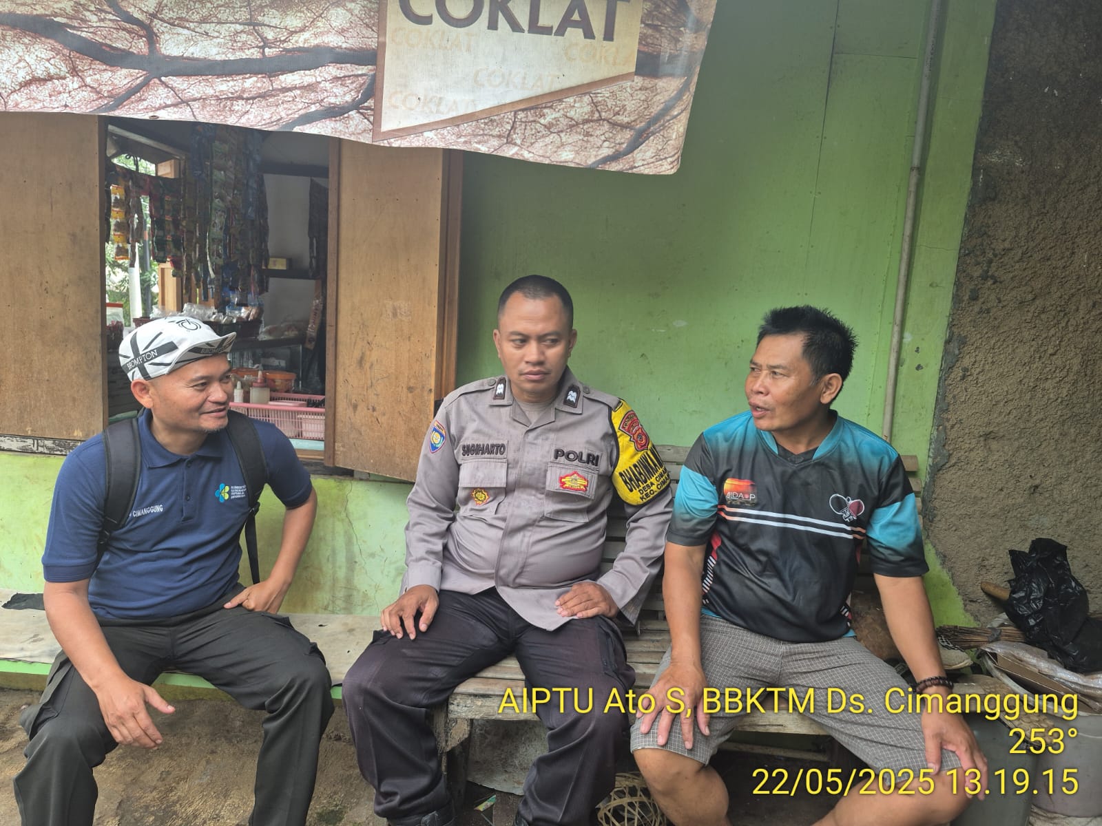 Cimanggung_Sumedang. Dalam rangka mempererat tali silaturahmi antara warga masyarakat binaan dengan bhabinkamtibmas Desa Cimanggung Polsek Cimanggung Polres Sumedang Polda Jabar AIPTU ATO SUGIARTO melaksanakan giat sambang ke warga Desa Cimanggung Kecamatan Cimanggung Kabupaten Sumedang. Kamis (22/05/2025). Kegiatan tersebut di laksanakan untuk berperan aktif membantu dan menjaga situasi kamtibmas di Desa Cimanggung Kecamatan Cimanggung Kabupaten Sumedang.Kapolres Sumedang AKBP JOKO DWI HARSONO, S.I.K., M.Hum. melalui kapolsek Cimanggung KOMPOL KARYAMAN D., S.H., M.H. mengatakan ”Anggota bhabinkamtibmas Desa Cimanggung Polsek Cimanggung Polres Sumedang Polda Jabar melaksanakan kegiatan rutin sambang sekaligus silaturahmi agar mendekatkan diri kepada warga masyarakat wilayah desa Cimanggung.”“Selain itu anggota bhabinkamtibmas juga wajib memberikan pengarahan dan edukasi kamtibmas,mempererat Tali silaturahmi, menyampaikan pesan kamtibmas, monitoring situasi kamtibmas, monitoring penerapan prokes dan mengajak warga masyarakat untuk senantiasa menjaga kondusifitas dan keamanan di lingkungannya masing-masing,” Pungkas Kapolsek Cimanggung.(Lia/Humas Polsek Cimanggung)