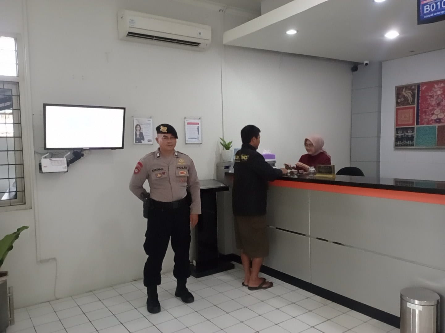 Dalam rangka memberikan rasa aman dan nyaman serta mengantisipasi aksi Kriminal saat transaksi di Bank, unit Pam Obvit Sat Samapta Polres Banjar melaksanakan pengamanan di Bank BRI Unit Purwaharja Kota Banjar. Jumat,23/05/2025.