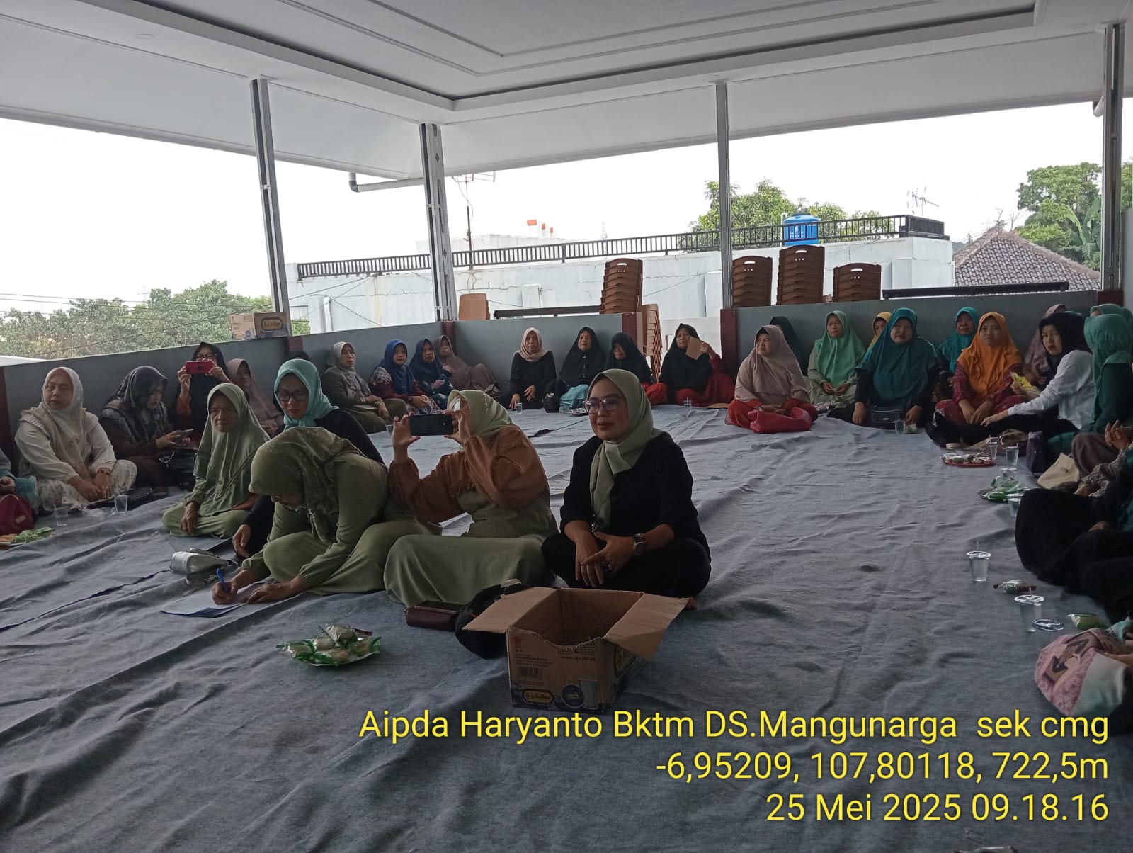 Cimanggung_Sumedang. Bertempat di aula desa Mangunarga Kecamatan Cimanggung Kabupaten Sumedang, dilaksanakan kegiatan Pengajian Rutin Bulanan Desa Mangunarga Kecamatan Cimanggung. Minggu (25/05/2025). Kegiatan pengajian di pimpin oleh ustad Yayan perwakilan dari RW 02.Kegiatan di hadiri oleh:- kepala desa di wakili oleh kaur kesra Sdr Nandang- Bhabinkamtibmas Aipda Haryanto – ketua RW 02- jemaah pengajian warga RW 02 jumlah 30 orang.Kegiatan selesai pukul 10.00 WIB, berjalan aman, tertib dan lancar.Bahwa kegiatan pengajian di laksanakan rutin oleh warga untuk meningkatkan keimanan dan Terjalin silaturahmi di lingkungan warga.(Lia/Humas Polsek Cimanggung)