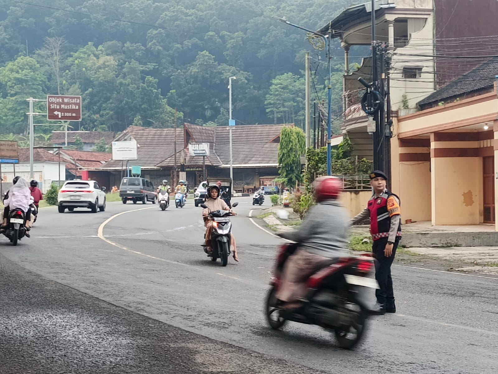 Polres Banjar – Cegah terjadinya Kepadatan kendaraan dan Kecelakaan Lalulintas, Unit PAM Obvit Sat Samapta Polres Banjar melaksanakan kegiatan pengaturan arus lalu lintas Tepatnya di Simpang Tiga Katapang, Rabu (28/05/2025)