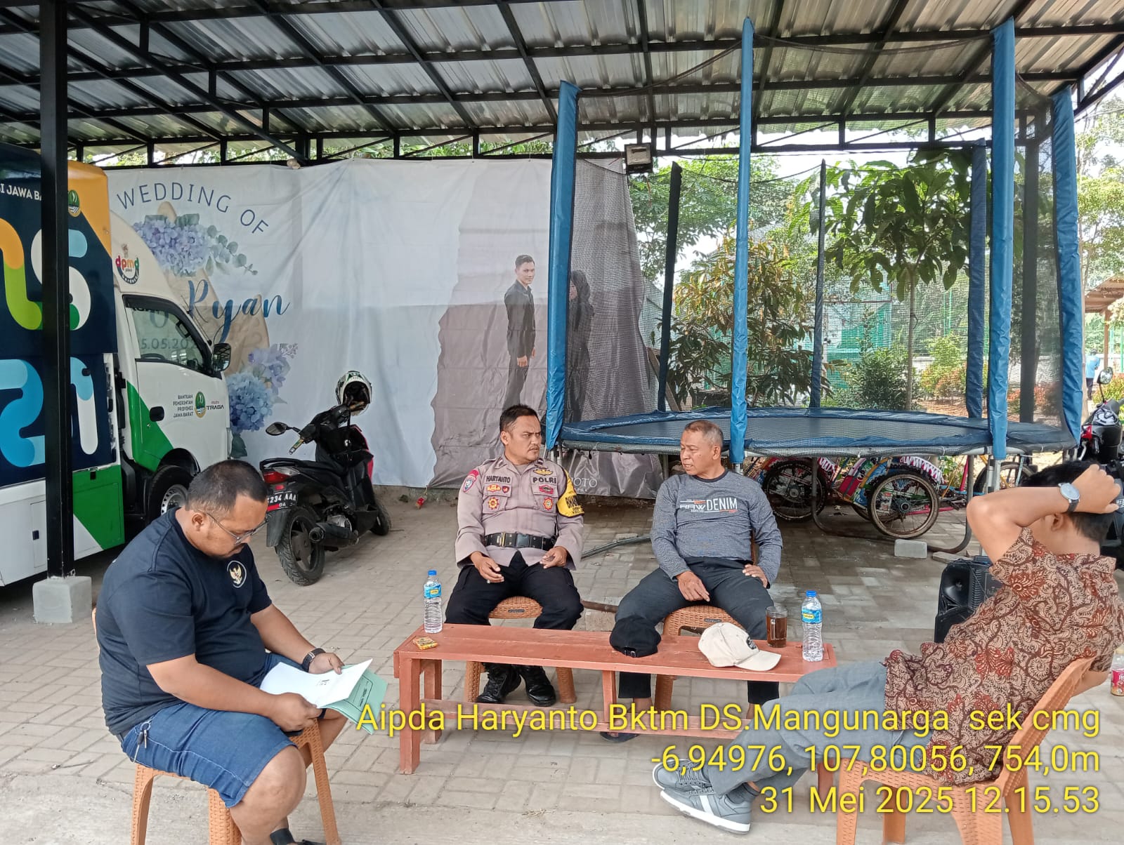 Cimanggung_Sumedang. Dalam rangka mempererat tali silaturahmi antara warga masyarakat binaan dengan bhabinkamtibmas Desa Mangunarga AIPDA HARYANTO melaksanakan giat sambang ke warga Desa Mangunarga Kecamatan Cimanggung Kabupaten Sumedang. Sabtu (31/05/2025). Kegiatan tersebut di laksanakan untuk berperan aktif membantu dan menjaga situasi kamtibmas di Desa Mangunarga Kecamatan Cimanggung Kabupaten Sumedang.Kapolresta Sumedang AKBP JOKO DWI HARSONO, S.I.K., M.Hum. melalui kapolsek Cimanggung KOMPOL KARYAMAN D., S.H., M.H. mengatakan ” Anggota bhabinkamtibmas Desa Mangunarga melaksanakan kegiatan rutin sambang sekaligus silaturahmi agar mendekatkan diri kepada warga masyarakat wilayah desa Mangunarga.“Selain itu anggota bhabinkamtibmas juga wajib memberikan pengarahan dan edukasi kamtibmas,mempererat Tali silaturahmi, menyampaikan pesan kamtibmas, monitoring situasi kamtibmas, monitoring penerapan prokes dan mengajak warga masyarakat untuk senantiasa menjaga kondusifitas dan keamanan di lingkungannya masing-masing,” Pungkas Kapolsek Cimanggung.(Lia/Humas Polsek Cimanggung)