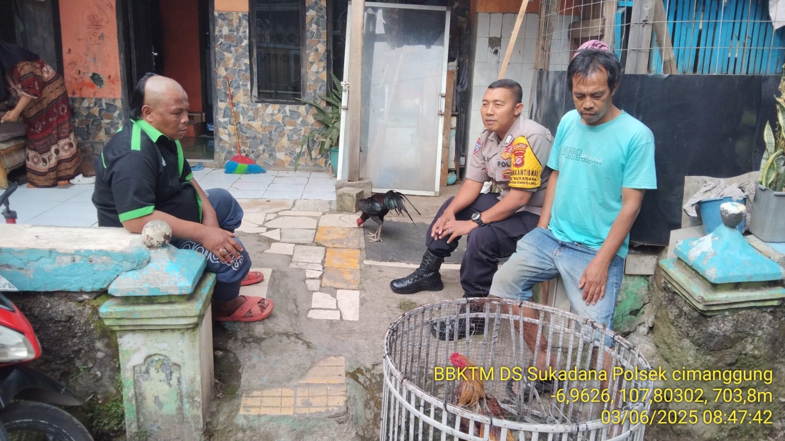 Cimanggung_Sumedang. Dalam rangka mempererat tali silaturahmi antara warga masyarakat binaan dengan bhabinkamtibmas Desa Sukadana Polsek Cimanggung Polres Sumedang Polda Jabar BRIPKA TRI WIDODO melaksanakan giat sambang ke warga Desa Sukadana Kecamatan Cimanggung Kabupaten Sumedang. Selasa (03/06/2025). Kegiatan tersebut di laksanakan untuk berperan aktif membantu dan menjaga situasi kamtibmas di Desa Sukadana Kecamatan Cimanggung Kabupaten Sumedang.Kapolresta Sumedang AKBP JOKO DWI HARSONO, S.I.K., M.Hum. melalui kapolsek Cimanggung KOMPOL KARYAMAN D., S.H., M.H. mengatakan ”Anggota bhabinkamtibmas Desa Sukadana Polsek Cimanggung Polres Sumedang Polda Jabar melaksanakan kegiatan rutin sambang sekaligus silaturahmi agar mendekatkan diri kepada warga masyarakat wilayah desa Sukadana.”“Selain itu anggota bhabinkamtibmas juga wajib memberikan pengarahan dan edukasi kamtibmas,mempererat Tali silaturahmi, menyampaikan pesan kamtibmas, monitoring situasi kamtibmas, monitoring penerapan prokes dan mengajak warga masyarakat untuk senantiasa menjaga kondusifitas dan keamanan di lingkungannya masing-masing,” Pungkas Kapolsek Cimanggung.(Lia/Humas Polsek Cimanggung)