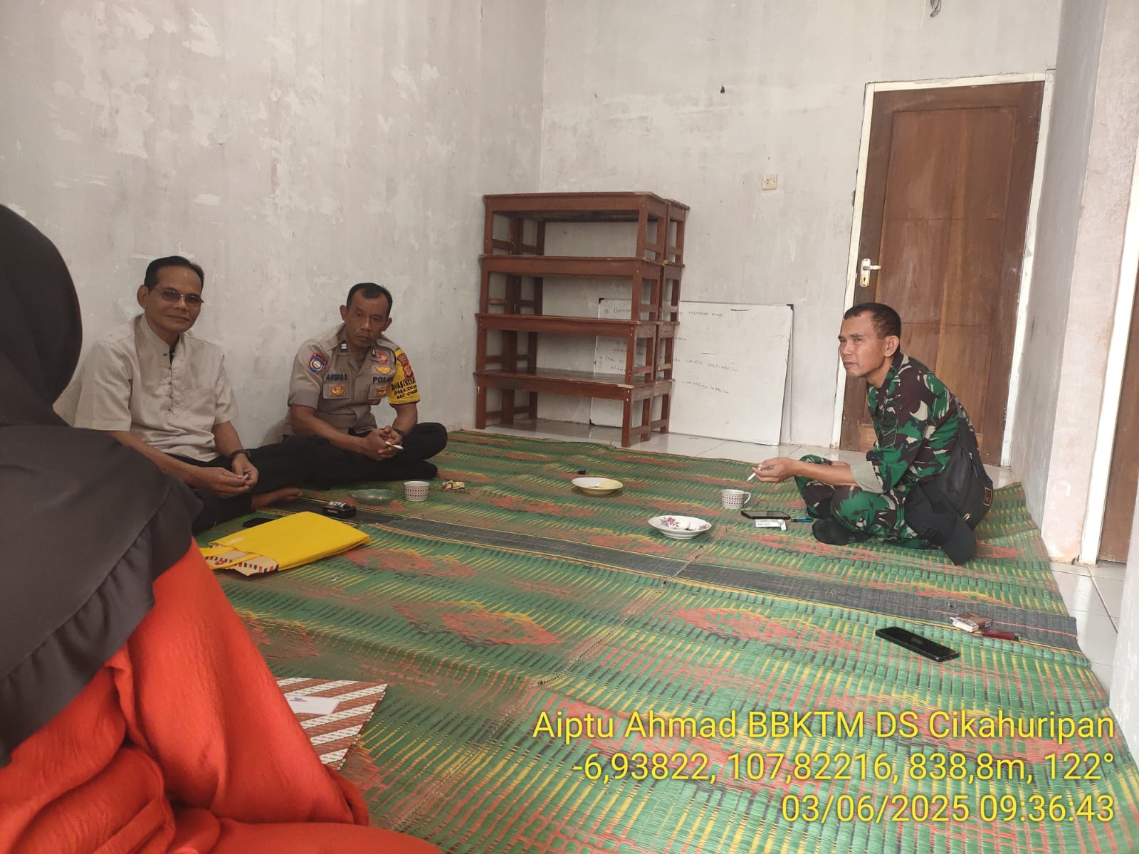 Cimanggung_Sumedang. Bertempat Dusun Sindangnangoh RW 08 perum lempuyang Desa Cikahuripan Bhabinkamtibmas Desa Cikahuripan Polsek Cimanggung Polres Sumedang Polda Jabar AIPTU AHMAD SUBEKTI bersama Babinsa SERKA DEDI FIRMANSYAH telah melaksanakan kegiatan Sambang dan silaturahmi Kamtibmas di dsn Sindangnangoh RW 08 perum lempuyang Desa Cikahuripan dan Silaturahmi Kamtibmas dalam rangka Pelaksanaan Quick Wins PRESISI. Selasa (03/06/2025). Adapun dalam kegiatan Sambang dan Silaturahmi Kamtibmas dengan warga masyarakat desa Cikahuripan tersebut, menyampaikan pesan – pesan Kamtibmas, antara lain :- Selalu menjaga keamanan dan ketertiban dilingkungannya dengan cara ikut berpartisipasi pada kegiatan Siskamling / Ronda Malam.- Antisipasi lingkungan warga sekitar terutama yang rawan bencana seperti pohon tumbang maupun tanah longsor dll agar selalu waspada- Apabila ada kejadian atau hal-hal yang penting segera melaporkan Pihak terkait baik Kepala Desa, Bhabinkamtibmas dan Bhabinsa.- Bijak menggunakan media sosial dan filter terkait berita Hoax.- Serta bagi yang membutuhkan bantuan Pihak Kepolisian agar menghubungi Nomor Telepon Dinas baik Polres Sumedang ataupun Polsek Cimanggung supaya segera ditindaklanjuti terkait gangguan Keamanan di lingkungan Warga Masyarakat. Kegiatan berjalan aman dan lancar serta terjalinnya silaturahmi dan bersinergi antara Warga Masyarakat dengan Polri.Kegiatan Sambang dan Silaturahmi Kamtibmas tersebut bertujuan untuk meningkatkan silaturahmi dan memudahkan Masyarakat memberikan informasi dan permasalahan Ganguan Kamtibmas dilingkungan sekitar serta meningkatkan pelayanan, pengayoman danĀ  pemeliharaan rasa aman kepada Masyarakat di wilayah Hukum Polsek Cimanggung dengan hadirnya Polri ditengah Masyarakat.(Lia/Humas Polsek Cimanggung)