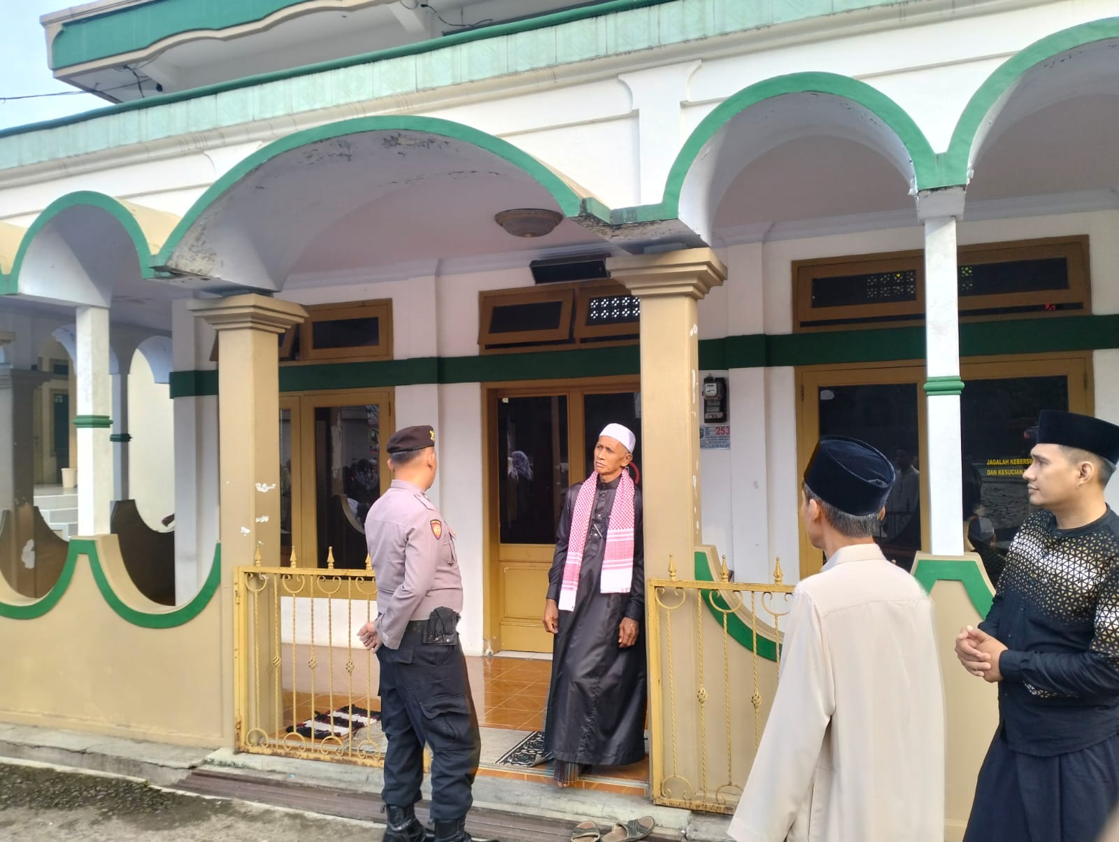 Petugas melakukan beberapa langkah pengamanan, antara lain: Pengaturan lalu lintas di sekitar lokasi masjid agar tidak terjadi kemacetan saat jemaah datang dan pulang, Pengawasan kendaraan parkir guna mencegah terjadinya curanmor dan Koordinasi dengan panitia masjid untuk memastikan rangkaian ibadah berlangsung tertib dan sesuai protokol keamanan