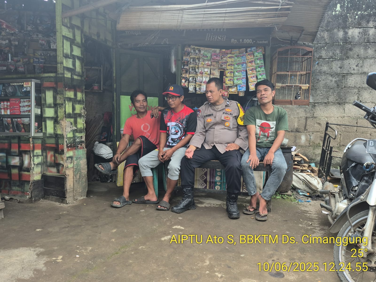 Cimanggung_Sumedang. Dalam rangka mempererat tali silaturahmi antara warga masyarakat binaan dengan bhabinkamtibmas Desa Cimanggung Polsek Cimanggung Polres Sumedang Polda Jabar AIPDA ATO SUGIARTO melaksanakan giat sambang ke warga Desa Cimanggung Kecamatan Cimanggung Kabupaten Sumedang. Selasa (10/06/2025). Kegiatan tersebut di laksanakan untuk berperan aktif membantu dan menjaga situasi kamtibmas di Desa Cimanggung Kecamatan Cimanggung Kabupaten Sumedang.Kapolres Sumedang AKBP JOKO DWI HARSONO, S.I.K., M.Hum. melalui kapolsek Cimanggung KOMPOL KARYAMAN D., S.H., M.H. mengatakan ”Anggota bhabinkamtibmas Desa Cimanggung Polsek Cimanggung Polres Sumedang Polda Jabar melaksanakan kegiatan rutin sambang sekaligus silaturahmi agar mendekatkan diri kepada warga masyarakat wilayah desa Cimanggung.”“Selain itu anggota bhabinkamtibmas juga wajib memberikan pengarahan dan edukasi kamtibmas,mempererat Tali silaturahmi, menyampaikan pesan kamtibmas, monitoring situasi kamtibmas, monitoring penerapan prokes dan mengajak warga masyarakat untuk senantiasa menjaga kondusifitas dan keamanan di lingkungannya masing-masing,” Pungkas Kapolsek Cimanggung.(Lia/Humas Polsek Cimanggung)