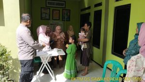 Cimanggung_Sumedang. Bertempat di Puskesdes Desa Sawahdadap Kecamatan Cimanggung Kabupaten Sumedang Bhabinkamtibmas Desa Sawahdadap Polsek Cimnggung AIPDA DENI ROHMANA bersama bidan desa dan petugas nakes puskesmas Sawahdadap di bantu ibu kaderTelah melaksanakan kegiatan monitoring penimbangan Balita,ngukur tinggi badan balita dengan sasaran sebanyak 60 balita. Selasa (10/06/2025). Giat tersebut dihadiri oleh :- Bidan Desa Sawahdadap – petugas Nakes Sawahdadap – Bhabinkamtibmas desa Sawahdadap – Kader Posyandu – peserta balita dan orang tuanya.Adapun kegiatan meliputi :1. Pengukuran Tinggi Badan2. Penimbangan Berat Badan3. Pemberian telur sebagai nutrisi. Bahwa kegiatan tersebut merupakan program dari pemerintah yg dilaksanakan oleh 4 pilar dan bidan.(Lia/Humas Polsek Cimanggung)