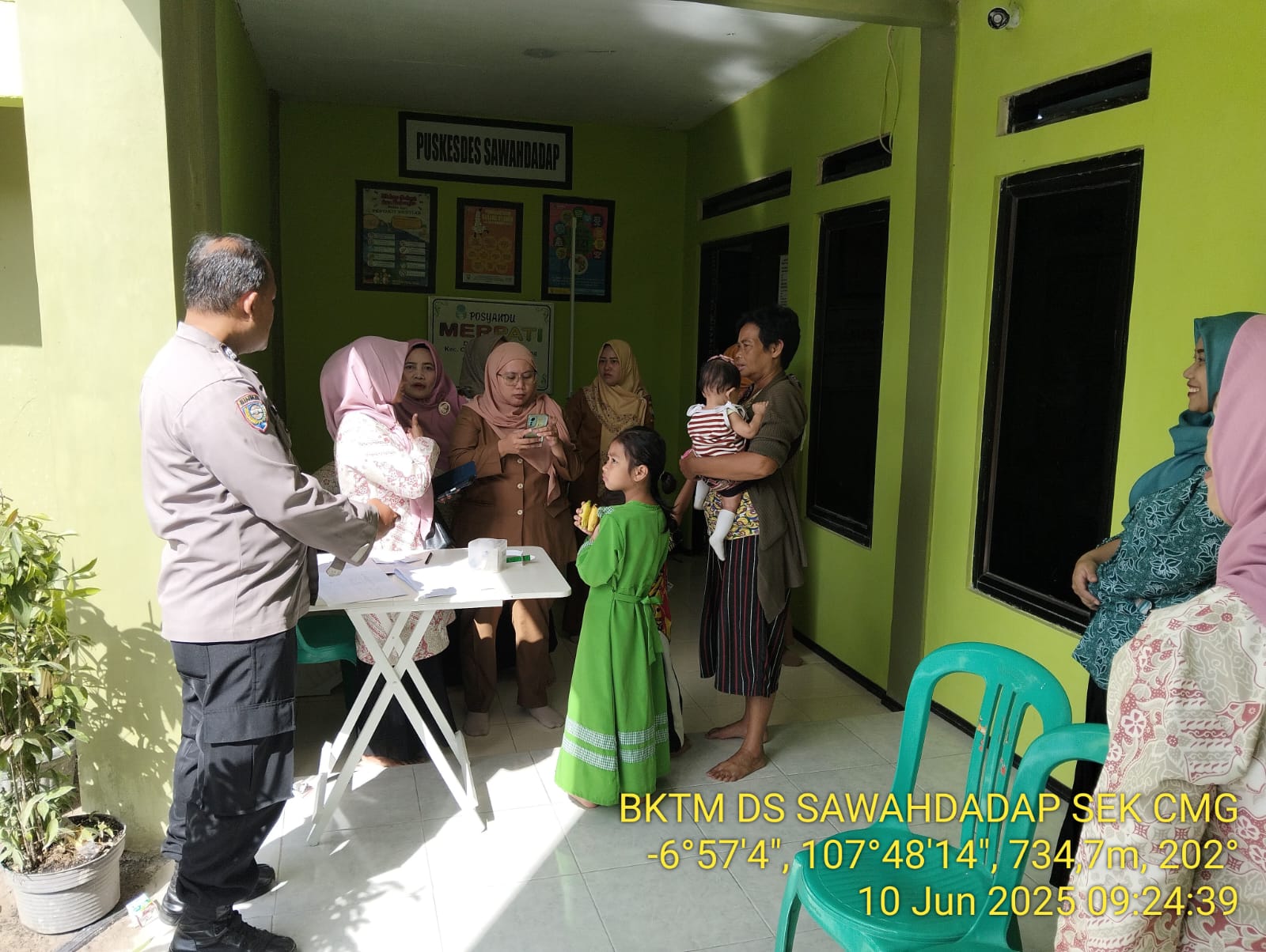 Cimanggung_Sumedang. Bertempat di Puskesdes Desa Sawahdadap Kecamatan Cimanggung Kabupaten Sumedang Bhabinkamtibmas Desa Sawahdadap Polsek Cimnggung AIPDA DENI ROHMANA bersama bidan desa dan petugas nakes puskesmas Sawahdadap di bantu ibu kaderTelah melaksanakan kegiatan monitoring penimbangan Balita,ngukur tinggi badan balita dengan sasaran sebanyak 60 balita. Selasa (10/06/2025). Giat tersebut dihadiri oleh :- Bidan Desa Sawahdadap – petugas Nakes Sawahdadap – Bhabinkamtibmas desa Sawahdadap – Kader Posyandu – peserta balita dan orang tuanya.Adapun kegiatan meliputi :1. Pengukuran Tinggi Badan2. Penimbangan Berat Badan3. Pemberian telur sebagai nutrisi. Bahwa kegiatan tersebut merupakan program dari pemerintah yg dilaksanakan oleh 4 pilar dan bidan.(Lia/Humas Polsek Cimanggung)