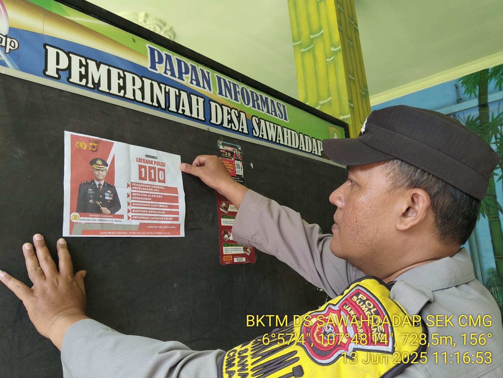 Cimanggung_Sumedang. Bertempat di wilayah Kecamatan Cimanggung Kabupaten Sumedang, di toko Alfamart Desa Sindanggalih kecamatan Cimanggung Kabupaten Sumedang , Ps. Panit 2 Smapta AIPDA ASEP SUPRIATNA telah melaksanakan kegiatan pemasangan Brosur dan mensosialisasikan LAYANAN KEPOLISIAN 110 BEBAS PULSA kepada warga masyarakat. Jum’at (13/06/2025). Dalam kesempatan tersebut Anggota Polsek Cimanggung juga Mensosialisasikan pelaksanaan jam malam bagi peserta Didik sesuai dengan Surat Edaran Gubernur Provinsi Jawa Barat serta menyampaikan pesan-pesan kamtibmas antara lain: – Jangan memarkir kendaraan/sepeda motor di halaman rumah terutama pada malam hari. – Ikut menjaga keamanan lingkungan dengan melaksanakan ronda malam, – Berkoordinasi dengan Bhabinkamtibmas apabila ada kejadian yang dapat menimbulkan gangguan Kamtibmas atau menghubungi nomor ,layanan Kepolisian 110 Bebas Pulsa. Selama giat berlangsung situasi kamtibmas kondusif serta giat berjalan dengan lancar. Bahwa kegiatan tersebut dilaksanakan untuk memudahkan masyarakat yang memerlukan layanan Kepolisian dengan cara dengan cara pijit 110 lalu pijit angka “0” untuk melaporkan kejadian ataupun gangguan kamtibmas lainnya.(Lia/Humas Polsek Cimanggung)