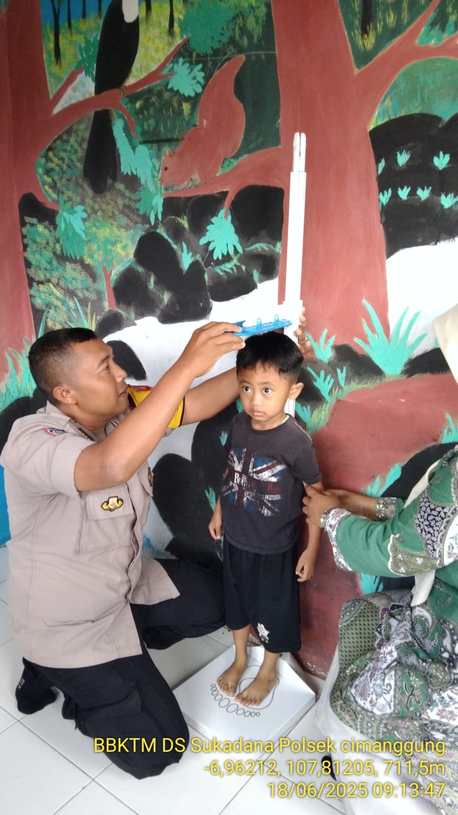 Cimanggung_Sumedang. Bhabinkamtibas desa Sukadana Polsek Cimanggung Polres Sumedang Polda Jabar BRIPKA TRI WIDODO telah melaksanakan giat monitoring Posyandu bertempat di Posyandu Bunter 2 Desa Sukadana Cimanggung Kabupaten Sumedang. Rabu (18/06/2025).