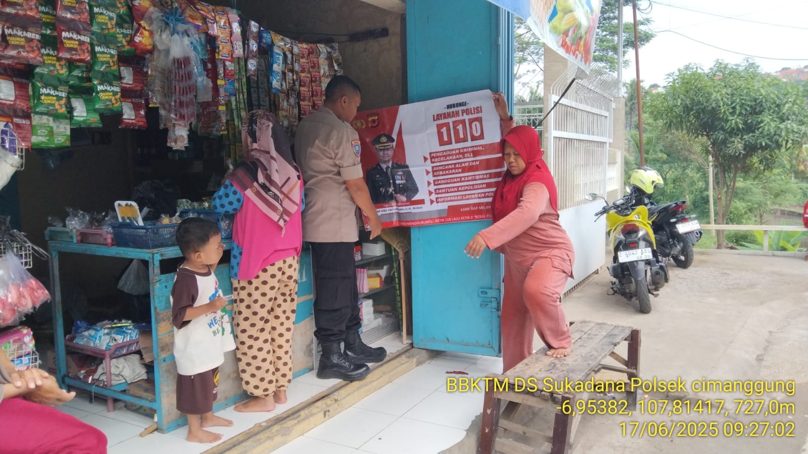 Cimanggung_Sumedang. Bhabinkamtibmas Desa Sukadana Polsek Cimanggung Polres Sumedang BRIPKA TRI WIDODO telah melaksanakan kegiatan Sosialisasi LAYANAN KEPOLISIAN 110 BEBAS PULSA ke Warga masyarakat dsn cipareag RW 08 Desa Sukadana dengan cara pijit 110 lalu pijit angka “0” untuk melaporkan. Minggu (17/06/2025). Kegiatan tersebut bertujuan untuk silaturahmi/kamtibmas ke warga masyarakat, Kegiatan sambang seperti ini dapat menjadi langkah awal dalam membangun hubungan yang erat antara kepolisian dan warga masyarakat serta diharapkan warga masyarakat dapat lebih proaktif berkordinasi dalam menjaga keamanan dan ketertiban di tengah – tengah masyarakat.Kegiatan tersebut dalam rangka menjalin silaturahmi dengan warga masyarakat selama kegiatan berjalan dengan aman tertib dan lancar.(Lia/Humas Polsek Cimanggung)