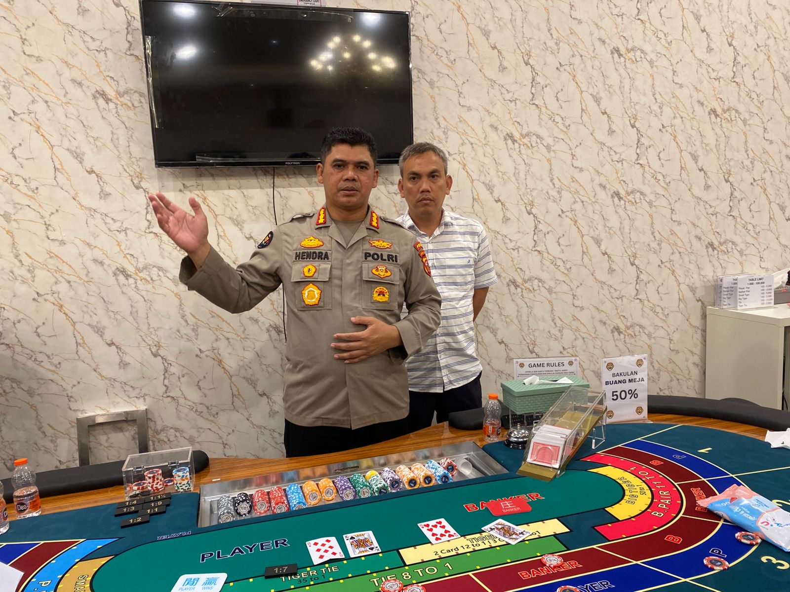 Tim gabungan Polda Jabar dan Polrestabes Bandung berhasil mengungkap kasus perjudian kasino jenis niu-niu dan bakarat di New Ballroom Billiard, Karaoke and Live Music, Jalan Ahmad Yani no 126, Kelurahan Malabar, Kecamatan Lengkong, Kota Bandung.Ketika dilakukan penggerebekan, puluhan orang yang ada di lokasi pun tampak panik dan takut. Namun, pihak kepolisian tetap mengimbau orang-orang yang berada di tempat tersebut untuk berdiam di tempatnya masing-masing.Penggerebekan dipimpin langsung Wakapolda Jabar, Brigjen Adi Vivid Gustiadi Bachtiar dan Tim gabungan Polda Jabar serta Polrestabes Bandung Kombes Resza Ramadianshah.Kabid Humas Polda Jabar, Kombes Pol. Hendra Rochmawan S.I.K., M.H menjelaskan dari pengungkapan ini Polisi mengamankan sebanyak 37 orang yang merupakan karyawan, 23 orang pemain judi, dan tiga orang yang bertugas sebagai penanggung jawab (managemen).”Tiga orang itu berinisial SSA (38) warga Banjarsari Surakarta, CW (57) warga Astanaanyar Kota Bandung, dan HP (35) warga Nguter, Sukoharjo. Mereka diamankan beserta barang bukti yang ada di lokasi,” katanya, Selasa (17/6/2025).Adapun barang bukti yang berhasil diamankan, antara lain 10 set meja kasino, uang tunai Rp 359,6 juta, empat buku rekening BCA, 38 unit ponsel, satu unit iPad, satu perangkat komputer kasir, dan perangkat CCTV serta ruangan monitor.”Kami akan proses mereka sesuai fakta hukum dan mengungkap siapa dibalik ini beserta akan mengungkap tempat sejenis yang ada di Jabar,” katanya.(Lia/Humas Polda Jabar)