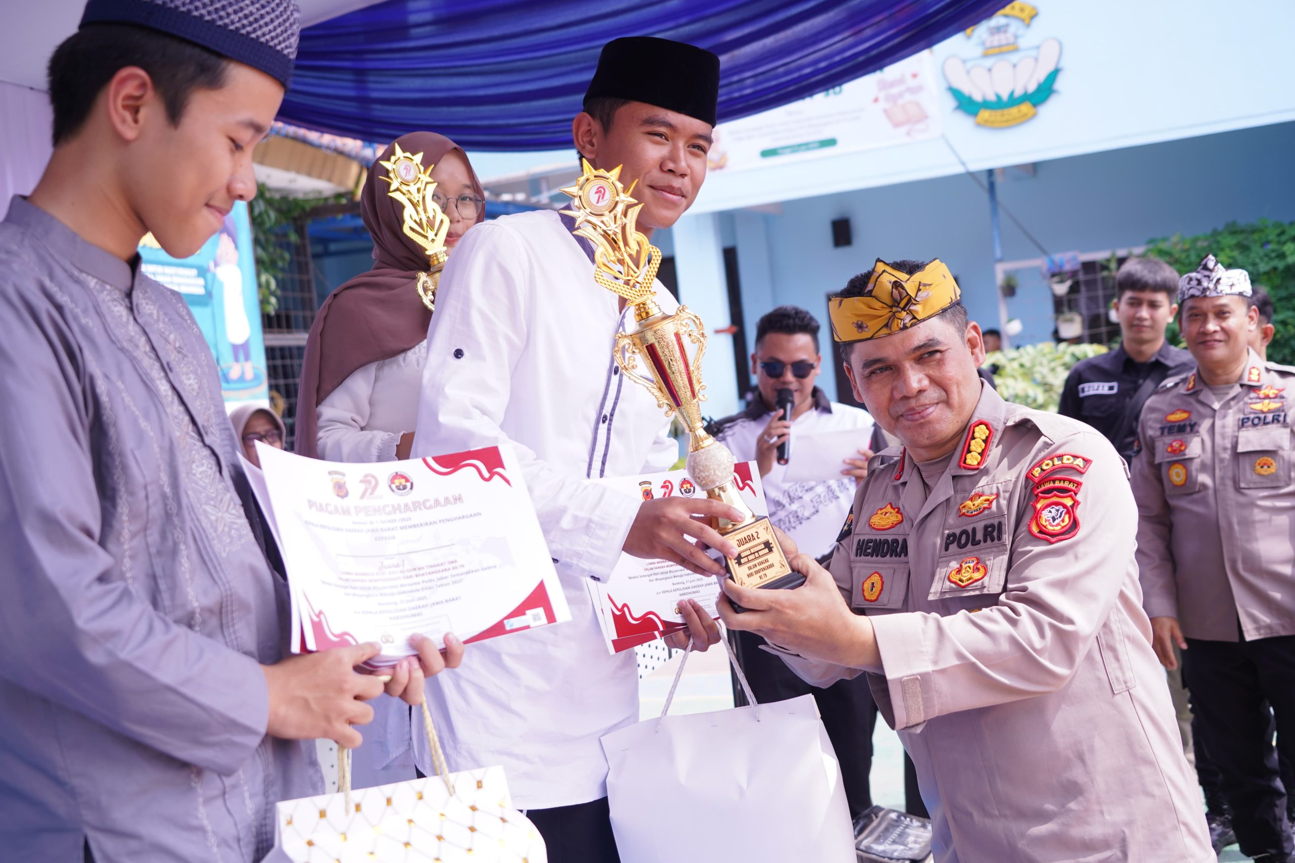 Dalam rangka memperingati Hari Bhayangkara ke-79 tahun 2025, Bidang Hubungan Masyarakat (Bidhumas) Polda Jawa Barat menyelenggarakan berbagai perlombaan yang melibatkan anak-anak tingkat Taman Kanak-Kanak (TK). Kegiatan ini mengusung tema “Polri untuk Masyarakat”, sebagai wujud nyata kedekatan Polri dengan generasi muda sejak usia dini. Bandung, Sabtu (21/06/2025)Perlombaan yang digelar terdiri dari Lomba Mewarnai dengan 73 peserta dan Lomba Hafalan Surat Pendek yang diikuti 17 peserta. Aspek penilaian pada Lomba Mewarnai meliputi kerapihan dan pemilihan warna, sementara Lomba Hafalan Surat Pendek dinilai berdasarkan ketepatan makhraj dan penggunaan tajwid.Kabid Humas Polda Jabar, Kombes Pol. Hendra Rochmawan, S.I.K., M.H., menuturkan bahwa kegiatan ini merupakan bentuk pendekatan humanis Polri kepada masyarakat. “Kami ingin memperkuat hubungan emosional Polri dengan masyarakat, khususnya anak-anak, sebagai calon pemimpin bangsa di masa depan,” jelasnya.Ketua Bidang sosial Yayasan Kemala Bhayangkari Daerah Jabar Ny. Retryn Pinora berharap agar generasi muda Indonesia tumbuh menjadi pribadi yang kuat karakternya, memiliki integritas, serta keterampilan dan kemampuan yang relevan untuk menghadapi tantangan zaman. Mereka juga diharapkan mampu menjaga persatuan dan kesatuan bangsa serta berkontribusi aktif dalam pembangunan menuju Indonesia Emas 2045.Melalui kegiatan edukatif dan religius seperti ini, Polri berharap bisa terus menumbuhkan rasa cinta tanah air, semangat kebangsaan, dan jiwa toleransi dalam diri anak-anak sejak usia dini.(Lia/Humas Polda Jabar)