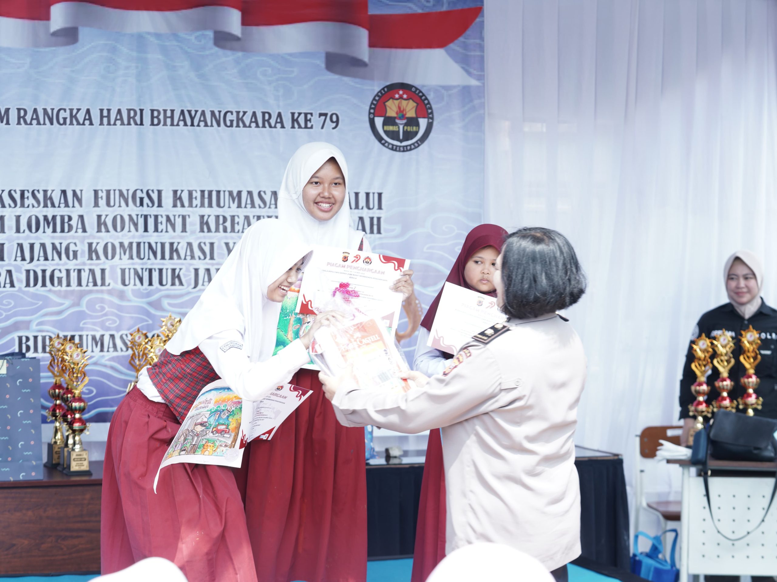 Bidang Humas Polda Jabar menyelenggarakan perlombaan tingkat Sekolah Dasar (SD) yang bertempat di Sekolah Kemala Bhayangkari Bandung. Dua jenis lomba yang digelar yakni Lomba Sholat Empat Rakaat dan Lomba Menggambar dengan tema “Keluarga Polisi”, Sabtu (21/6/2025)Acara ini berlangsung meriah dan penuh semangat kebersamaan dalam rangka menyambut Hari Bhayangkara ke-79, Para peserta yang berasal dari siswa-siswi Sekolah Dasar tampak antusias mengikuti perlombaan. Lomba ini diikuti dengan penuh semangat oleh anak-anak, yang tidak hanya menunjukkan kemampuan dan kreativitas, tetapi juga menjadi ajang pembentukan karakter dan pembelajaran nilai-nilai keagamaan serta penghargaan terhadap profesi kepolisian.Kegiatan ini juga turut dihadiri oleh kepala sekolah, guru-guru pendamping, orang tua murid, serta dewan juri yang berasal dari unsur profesional dan tokoh masyarakat.Sebagai pembuka kegiatan, Kabid Humas Polda Jabar Kombes Pol. Hendra Rochmawan, S.I.K., M.H. memberikan sambutan yang menginspirasi. Dalam sambutannya, beliau menyampaikan:”Kegiatan ini merupakan bagian dari upaya kami untuk mendekatkan institusi Polri dengan masyarakat, khususnya generasi muda. Melalui lomba ini, kami ingin menanamkan nilai-nilai spiritual, cinta Tanah Air, dan rasa bangga terhadap profesi orang tua mereka. Anak-anak adalah masa depan bangsa, dan hari ini kita melihat masa depan yang cerah dari semangat mereka dalam berkarya dan beribadah.” UnkapnyaKetua Bidang Sosial.yayasan Kemala Bhayangkari Daerah Jawa Barat Ny. Retryn Pinora juga menambahkan bahwa kegiatan seperti ini diharapkan dapat menjadi agenda rutin yang mendorong pembinaan karakter sejak usia dini.Humas Polda Jabar mengapresiasi dukungan penuh dari pihak Sekolah Kemala Bhayangkari Bandung sebagai tuan rumah, serta seluruh pihak yang telah berkontribusi dalam kelancaran acara. Di akhir kegiatan, para pemenang lomba mendapatkan hadiah dan penghargaan sebagai bentuk apresiasi atas usaha dan bakat mereka.Acara ini ditutup dengan sesi foto bersama dan penyerahan piagam kepada para pemenang, meninggalkan kesan mendalam bagi seluruh peserta dan tamu undangan. Semangat kolaborasi antara kepolisian dan dunia pendidikan diharapkan terus terjalin dalam membangun generasi muda yang berakhlak dan berprestasi.(Lia/Humas Polda Jabar)