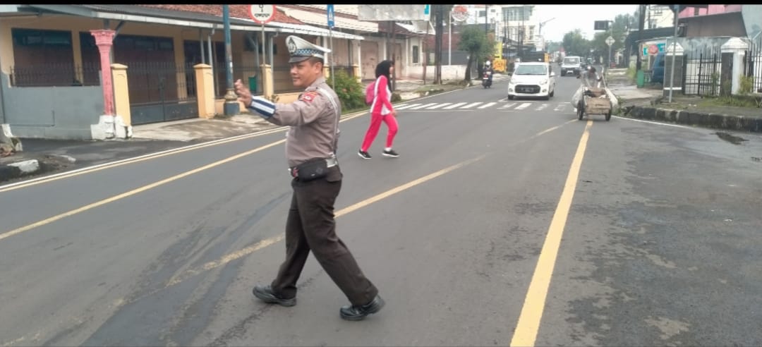 Pengaturan arus lalulintas bertujuan untuk membantu anak – anak sekolah menyebrang dan mengurai Padat kendaraan di Jam masuk sekolah di pagi hari serta aktifitas masyarakat Di Jalan Raya