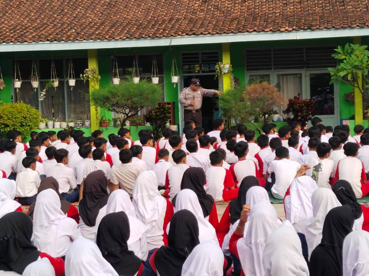 Kali ini Aiptu Yadi Heratriyadi ,S,Sos Panit Binmas Polsek Banjar dalam rangka pembinaan secara Persuasif cegah kenakalan remaja datangi Sekolah tepatnya kampus SMP N 5 Banjar
