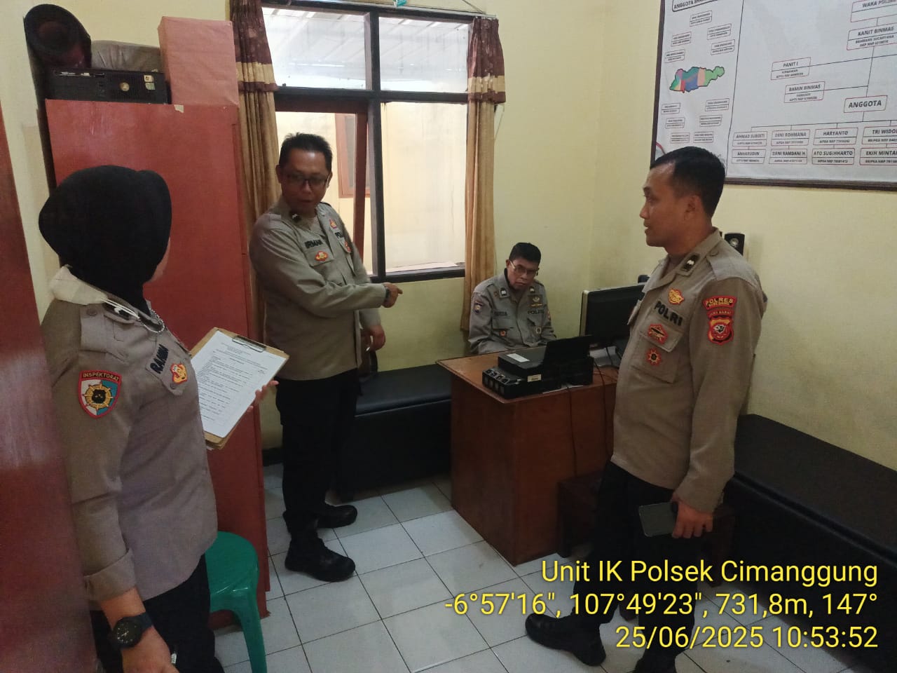 Cimanggung_Sumedang. Bertempat di Mako Polsek Cimanggung, telah dilaksanakan kegiatan penilaian kebersihan kantor Polsek Jajaran Polres Sumedang dalam rangka rangkaian hari Bhayangkara ke 79 tahun 2025. Rabu (25/06/2025).