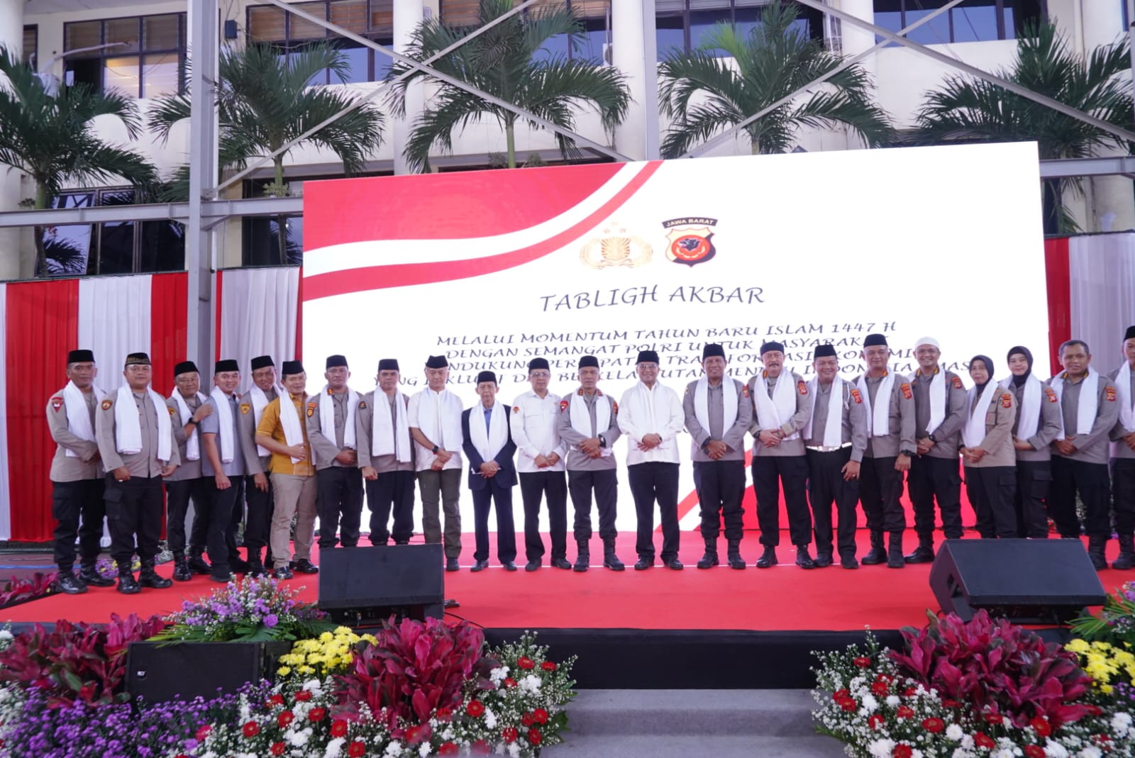 Kepolisian Daerah Jawa Barat (Polda Jabar) menggelar Tabligh Akbar yang meriah di Lapangan Tenis Indoor Mapolda Jabar pada Kamis (26/6/2025) sore. Acara istimewa ini diadakan dalam rangka memperingati Hari Bhayangkara ke-79 dan menyambut Tahun Baru Islam 1447 Hijriah, sekaligus menjadi momentum doa bersama untuk terwujudnya Jawa Barat Istimewa.Tabligh Akbar ini dihadiri oleh sejumlah tokoh penting dan perwakilan berbagai elemen masyarakat. Tampak hadir dalam majelis yang penuh berkah ini adalah Kapolda Jabar Irjen Pol. Rudi Setiawan, S.I.K., S.H., M.H., didampingi para Pejabat Utama (PJU) Polda Jabar, serta tamu kehormatan seperti Wakil Kepala Kejaksaan Tinggi (Wakajati) Jawa Barat Bapak Haryono, Wakil Gubernur Jawa Barat Bapak Uu Ruzhanul Ulum, Brigjen Toto Oktaviana (Kabinda Jabar), Asops Kodam III Siliwangi (mewakili Danlanal Bandung), Asmin Kogartap Bandung, Kepala Basarnas Bandung, Danlanal Bandung, dan Danlanud Sulaiman.Para tokoh agama juga turut memeriahkan acara ini, di antaranya Profesor Doktor Badrudzaman M. Yunus dari UIN Sunan Gunung Djati Bandung yang bertindak sebagai penceramah utama, Ketua FKUB Rafani Akhyar, Ketua PW Muhammadiyah Jabar, Ketua PW Persis Jabar, serta para ulama, kyai, dan pimpinan pondok pesantren se-Jawa Barat. Anggota DPRD Provinsi Jawa Barat, dan yang lainnya yang juga hadir dalam kesempatan tersebut.Dalam sambutannya yang penuh kehangatan, Kapolda Jabar Irjen Pol. Rudi Setiawan menyampaikan rasa hormat dan terima kasihnya kepada seluruh hadirin yang telah meluangkan waktu untuk hadir di Majelis Tabligh Akbar. Ia secara khusus menyapa satu per satu tamu kehormatan, termasuk Wakil Gubernur Jawa Barat Bapak Uu Ruzhanul Ulum, yang ia sebut memiliki marga yang sama dengannya, “Setiawan.” “Kami sudah mengukuhkan ada Marga Setiawan sekarang Pak, yaitu Danpusnif, Iwan Setiawan, kemudian Pak Wagub, Erwan Setiawan dan Pak Kapolda Jabar, Rudi Setiawan. Silahkan ada yang kalau ada yang mau mendaftar lagi yang setiawan, mangga,” ujar Kapolda yang disambut senyum hadirin.Kapolda Jabar juga menekankan pentingnya doa dalam perjalanan hidup dan tugas kepolisian. “Saya sangat meyakini adanya kekuatan doa dalam perjalanan hidup saya. Kita ini enggak punya apa-apa, enggak punya mampu apa-apa, enggak punya kekuatan apa-apa. Yang saya andalkan hanyalah doa,” tegasnya.Ia menjelaskan bahwa inisiasi Tabligh Akbar ini adalah bagian dari upaya Polda Jabar untuk berkumpul dan berdoa bersama seluruh elemen masyarakat, khususnya umat Islam. “Perjalanan tugas Polri dengan dinamikanya semakin hari bukanlah semakin ringan. Cukup dinamis, cukup banyak godaan tantangan hambatannya. Oleh sebab itu saya yakin ini doa,” tutur Irjen Pol. Rudi Setiawan.Acara ini juga menjadi momen perayaan Tahun Baru Islam 1447 H. “Ini sangat barokahnya luar biasa, ini kita merayakan Tahun Baru Islam dengan berkumpul dan berdoa. Semoga doa-doa kita ini diijabah oleh Allah SWT, kita punya tujuan Jawa Barat Istimewa,” pungkas Kapolda Jabar.Dengan Tabligh Akbar ini, Polda Jabar berharap dapat mempererat tali silaturahmi antara kepolisian dengan masyarakat serta memanjatkan doa bersama demi kemajuan dan keamanan Provinsi Jawa Barat. Semoga doa-doa yang dipanjatkan di Majelis Tabligh Akbar ini diijabah oleh Allah SWT dan membawa keberkahan bagi seluruh masyarakat Jawa Barat.(Lia/Humas Polda Jabar)