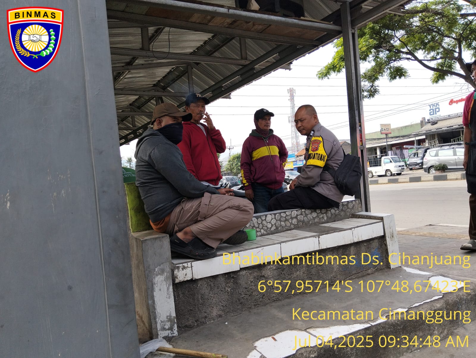 Cimanggung-Sumedang. Bhabinkamtibmas Desa Cihanjuang Polsek Cimanggung Polres Sumedang Polda Jabar AIPDA DANI RAMDANI HIDAYAT laksanakan sambangi warga Dusun bunter guna monitoring keamanan dan ketertiban masyarakat. Jum’at (04/07/2025). Bhabinkamtibmas Desa Cihanjuang pada pelaksanaan sambang kali ini menyambangi warga Desa Cihanjuang Kecamatan Cimanggung Kabupaten Sumedang yang sedang melaksanaan aktifitas kesehariannya.Pada kesempatan sambang kali ini saat bertemu dengan warga binaan, Bhabinkamtibmas menyampaikan pesan-pesan kamtibmas diantaranya himbauan keamanan dan wajib lapor bagi tamu yang baru datang dan penduduk setempat.Selain itu juga Bhabinkamtibmas menyampaikan kepada warga untuk segera menghubungi dan melaporkan kepada aparat berwenang jika terjadi perkara tindak pidana di wilayahnya.Sementara itu Kapolres Sumedang AKBP JOKO DWI HARSONO, S.I.K., M.Hum. melalui Kapolsek Cimanggung KOMPOL KARYAMAN D., S.H., M.H. menyampaikan bahwa berdasarkan penugasannya para personil Bhabinkamtibmas akan senantiasa memantau perkembangan kamtibmas di wilayah desa binaanya,” pungkasnya.(Lia/Humas Polsek Cimanggung)