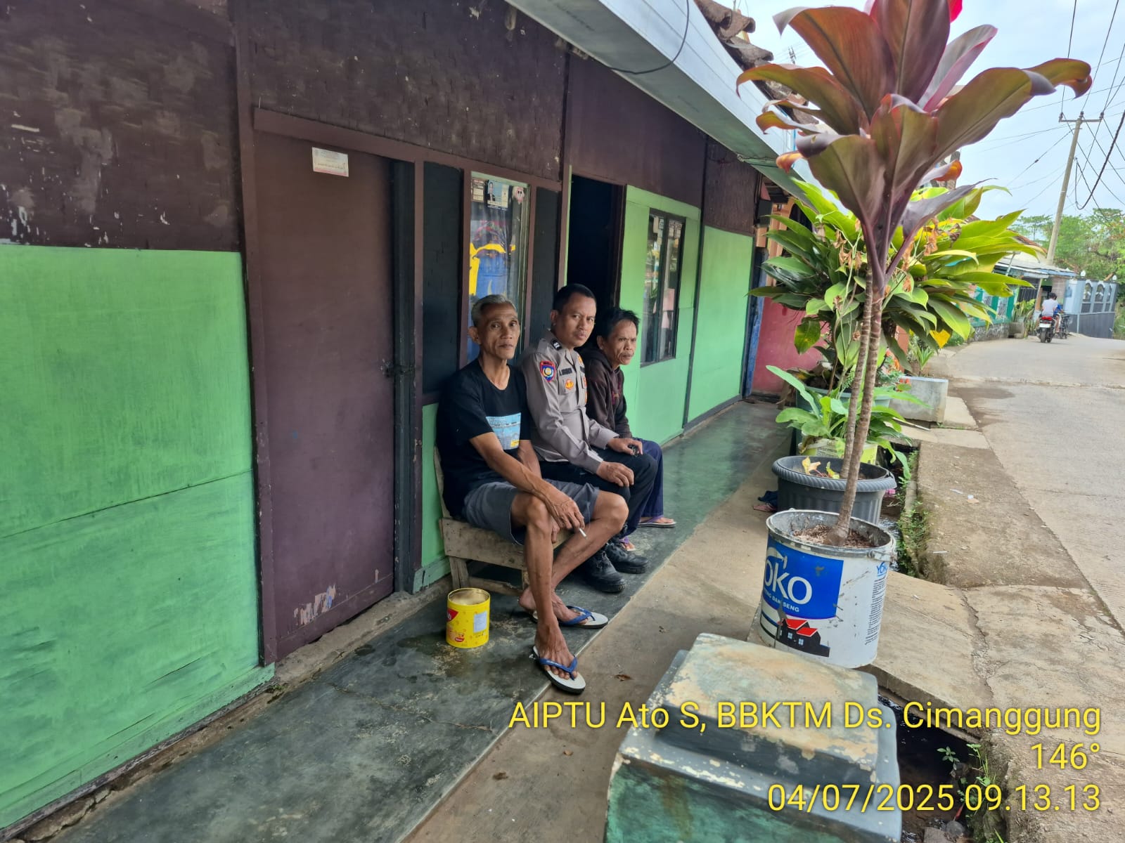 Cimanggung_Sumedang. Dalam rangka mempererat tali silaturahmi antara warga masyarakat binaan dengan bhabinkamtibmas Desa Cimanggung Polsek Cimanggung Polres Sumedang Polda Jabar AIPDA ATO SUGIARTO melaksanakan giat sambang ke warga Desa Cimanggung Kecamatan Cimanggung Kabupaten Sumedang. Jum’at (04/07/2025). Kegiatan tersebut di laksanakan untuk berperan aktif membantu dan menjaga situasi kamtibmas di Desa Cimanggung Kecamatan Cimanggung Kabupaten Sumedang.Kapolres Sumedang AKBP JOKO DWI HARSONO, S.I.K., M.Hum. melalui kapolsek Cimanggung KOMPOL KARYAMAN D., S.H., M.H. mengatakan ”Anggota bhabinkamtibmas Desa Cimanggung Polsek Cimanggung Polres Sumedang Polda Jabar melaksanakan kegiatan rutin sambang sekaligus silaturahmi agar mendekatkan diri kepada warga masyarakat wilayah desa Cimanggung.”“Selain itu anggota bhabinkamtibmas juga wajib memberikan pengarahan dan edukasi kamtibmas,mempererat Tali silaturahmi, menyampaikan pesan kamtibmas, monitoring situasi kamtibmas, monitoring penerapan prokes dan mengajak warga masyarakat untuk senantiasa menjaga kondusifitas dan keamanan di lingkungannya masing-masing,” Pungkas Kapolsek Cimanggung.(Lia/Humas Polsek Cimanggung)