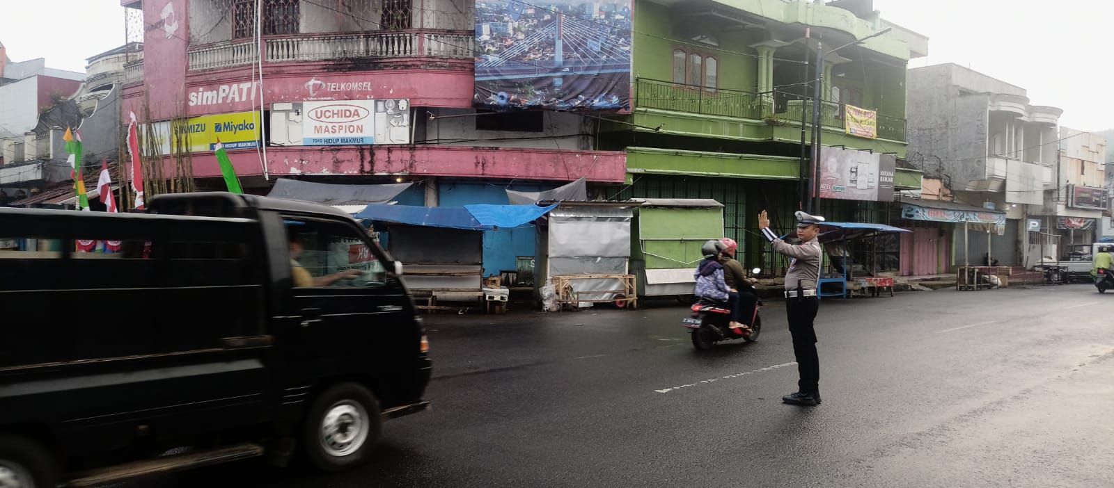 Selain pengaturan lalu lintas, petugas juga aktif menyosialisasikan pentingnya keselamatan berlalu lintas dan mengimbau masyarakat agar senantiasa mematuhi aturan demi keselamatan bersama.