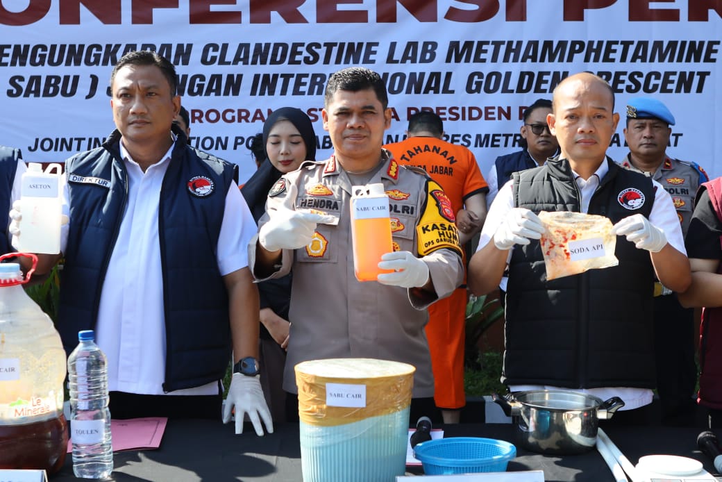 From the results of the raids, the police confiscated dozens of evidence used in the methamphetamine production process, including drums, chemical liquids, digital scales, plastic clips, and other laboratory equipment.” he said.The perpetrators are now charged with Article 114 paragraph (2) jo Article 132 paragraph (1) of subsidiary Article 113 paragraph (2) jo Article 132 paragraph (1) more subsidiary Article 112 paragraph (2) jo Article 132 paragraph (1) of Law No. 35 of 2009 concerning Narcotics, with a maximum threat of death sentence, life imprisonment, and a fine of up to Rp10 billion.This disclosure is part of an effort to support the 7th Asta Cita program, namely “Strengthening Political, Legal and Bureaucratic Reform, as well as strengthening the prevention and eradication of corruption and drugs.” This is the commitment of the West Java Regional Police in strengthening the integrity of national law and realizing Indonesia which is free from the threat of illicit trafficking of narcotics.