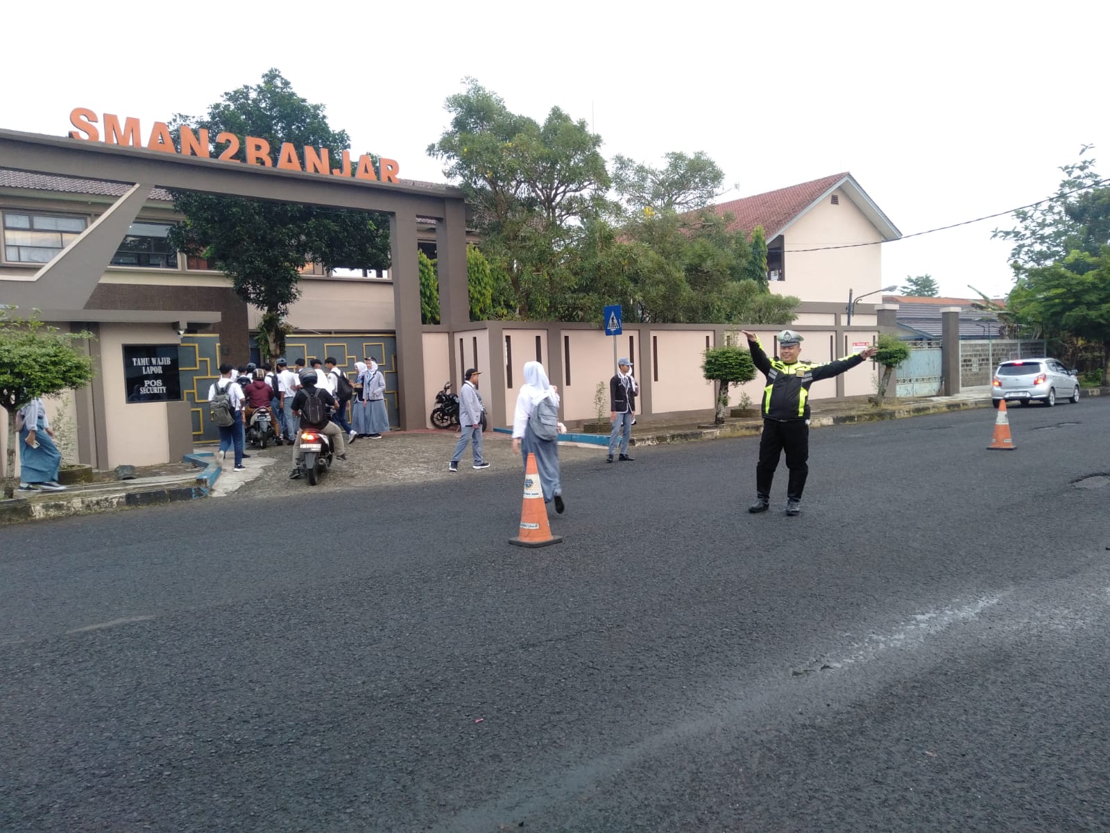 Kegiatan dilaksanakan di dua lokasi, yaitu depan SMAN 2 Banjar dan Simpang Empat Pasar Langensari, oleh personel Unit Lantas Polsek Langensari, yakni Aipda Fajar Pribadi, S.H., Aipda Taufik Rahman, S.I.P., dan Brigpol Ikbal Ramadhan.
