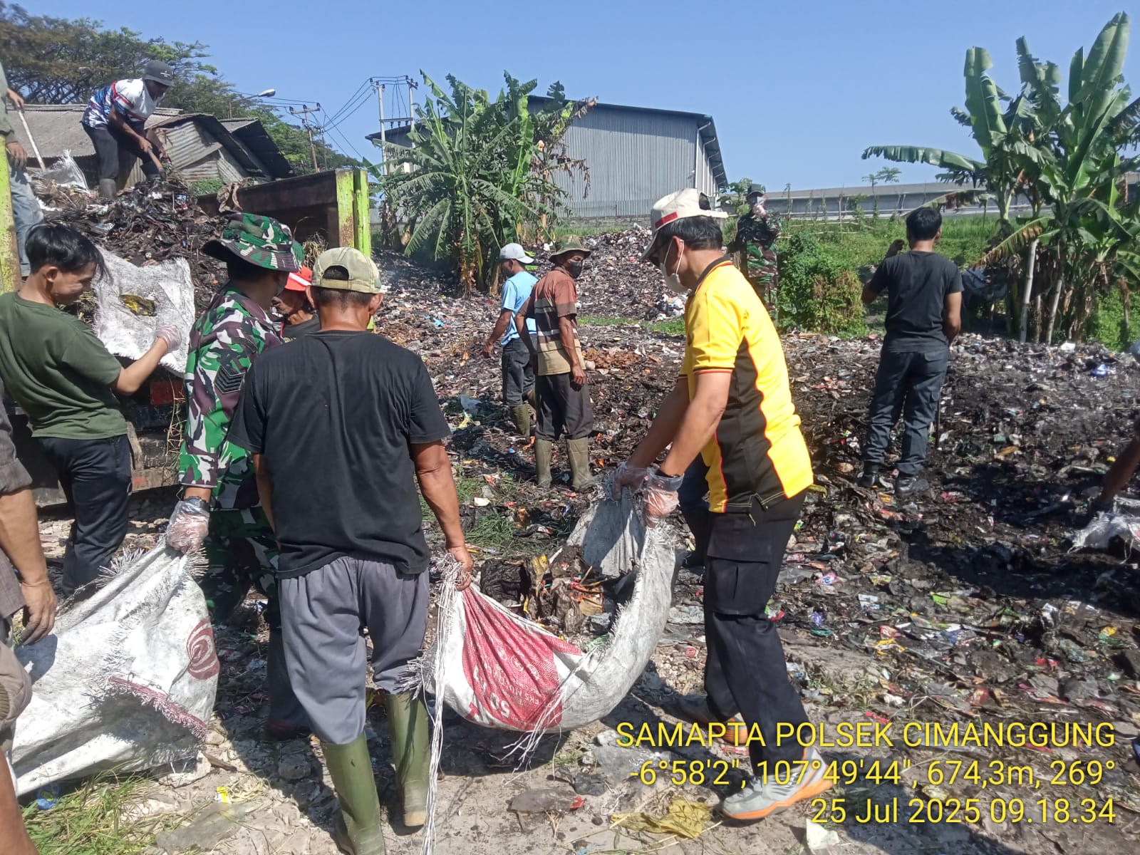 Cimanggung_Sumedang. Bertempat di Lahan Milik / Dikuasai Pemprov Jabar Dusun Manabaya RT. 02/06 Desa Sindangpakuon Kecamatan Cimanggung Kabupaten Sumedang telah dilaksanakan kegiatan Kegiatan Jum’at Bersih berupa kerja bakti dalam rangka Gerakan Penanganan Sampah di Sungai Citarik ( Belakang Rumah Makan Ampera ). Jum’at (25/07/2025). Kegiataan tersebut dipimpin langsung Kapolsek Cimanggung Kompol Karyaman D S.H., M.H. didampingi Camat Cimanggung Drs H. Agus Wahyudin, M.Si, Danramil Cimanggung Lettu Nanang Koswara, Anggota DPRD Kab. Sumedang Fraksi PPP Sdri. Hj. Elah Karmilah diikuti gabungan personil dari Polsek Cimanggung Koramil Cimanggung, serta Warga Masyarakat dengan jumlah yang hadir Lk sebanyak 100 orang. Adapun kegiatan yang dilaksanakan yaitu melaksanakan kerja bakti pembersihan dan pengangkutan tumpukan sampah menggunakan 2 ( Unit ) Armada Truk Sampah Milik DLHK yang berada di Lokasi / Lahan Milik Pemprov Jabar di Dusun Manabaya RT 02/06 Desa Sindangpakuon Kecamatan Cimanggung Kabupaten Sumedang Kegiatan selesai sekira pukul 11.00 wib berjalan dengan aman, tertib dan lancar. Bahwa kegiatan tersebut merupakan tindak lanjut arahan Bupati Sumedang terkait penanganan sampah di Sungai Cimande ( Belakang Rumah Makan Ampera ) yang diharapkan dapat memberikan manfaat nyata bagi masyarakat dalam hal kesadaran akan pentingnya kepedulian sosial, mengelola dan menjaga kebersihan tidak membuang sampah sembarangan serta meningkatan sinergitas antara Polri, TNI dan masyarakat khususnya di wilayah Kecamatan Cimanggung Kabupaten Sumedang.(Lia/Humas Polsek Cimanggung)