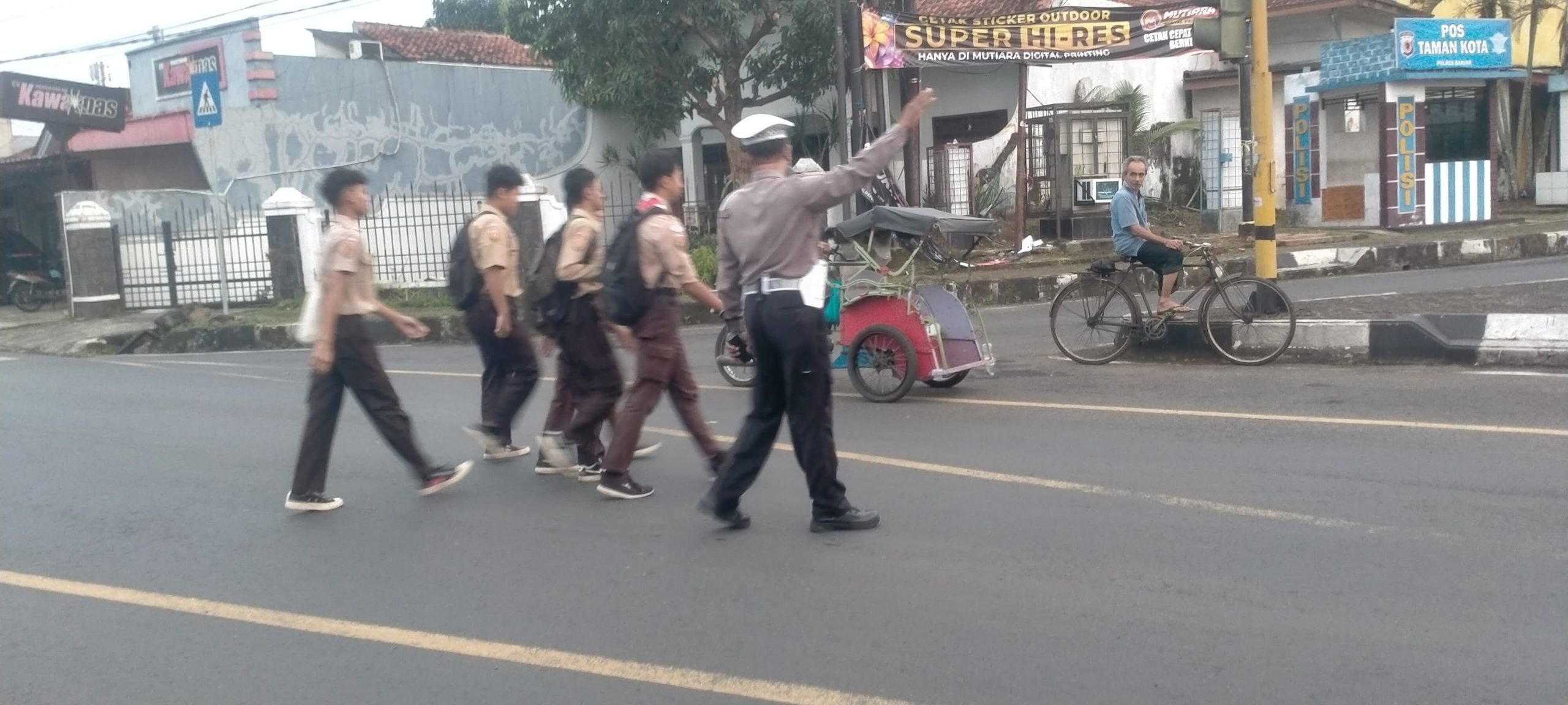 Pengaturan arus lalulintas bertujuan untuk membantu anak – anak sekolah menyebrang dan mengurai Padat kendaraan di Jam masuk sekolah di pagi hari serta aktifitas masyarakat Di Jalan Raya