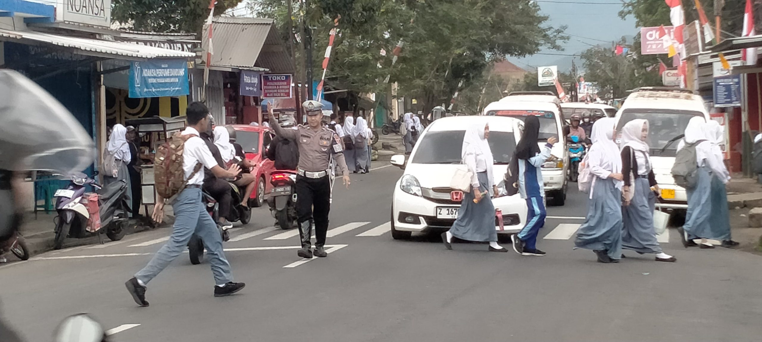 Banjar – Antisipasi terjadinya padat kendaraan dan Kecelakaan Lalulintas Unit Lalulintas Polsek Banjar melaksanakan kegiatan pengaturan arus lalu lintas pagi hari Tepatnya di Jalan Dr. Didi kartasasmiata Linkungan Pintusinga Kota Banjar