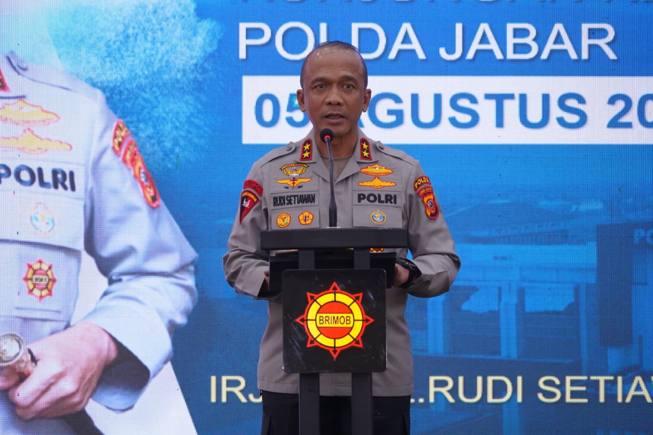 Kapolda Jawa Barat, Irjen Pol. Rudi Setiawan, S.I.K., S.H., M.H. melaksanakan kunjungan kerja ke Markas Komando Satuan Brimob Polda Jabar pada hari Selasa, 05 Agustus 2025, sebagai bagian dari rangkaian agenda pembinaan dan pengawasan di lingkungan Polda Jabar.