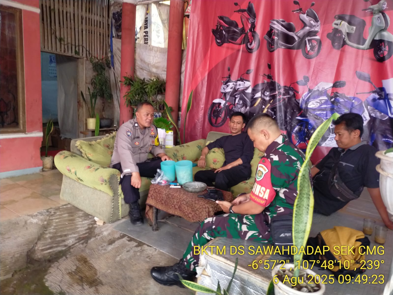 Cimanggung_Sumedang. Bhabinkamtibmas Desa Sawahdadap Polsek Cimanggung AIPTU DENI ROHMANA bersama Babinsa SERKA ASEP TEDI Telah Melaksanakan Kegiatan Sambang ke warga binaan Dsn Cigulampok Rt 03/07 Desa Sawahdadap Kecamatan Cimanggung Kabupaten Sumedang dalam Rangka Beyond Trust Presisi Polri. Rabu (06/08/2025). Adapun Himbauan Kamtibmas dalam kegiatan tersebut dengan beberapa hal sebagai berikut :1. Menyampaikan pesan – pesan Kamtibmas agar memaksimalkan ronda malam untuk keamanan lingkungan.serta memasang bendera merah putih HUT RI ke 80 thn2. Menginformasikan berita berita penting dan terkini3. Menyerap informasi dan Aspirasi dari warga masyarakat4. Menampung usulan, saran dan keluhan terhadap pemerintah desa5. Pemecahan Masalah / Problem Solving.Warga sangat antusias menyambut kedatangan Bhabinkamtibmas, Kegiatan tersebut berjalan aman dan lancar serta kondusif.Bahwa kegiatan tersebut sehingga terciptanya situasi dan Kondisi Kamtibmas yang kondusif di wilayah Desa Sawahdadap Kecamatan Cimanggung Kabupaten Sumedang.(Lia/Humas Polsek Cimanggung)