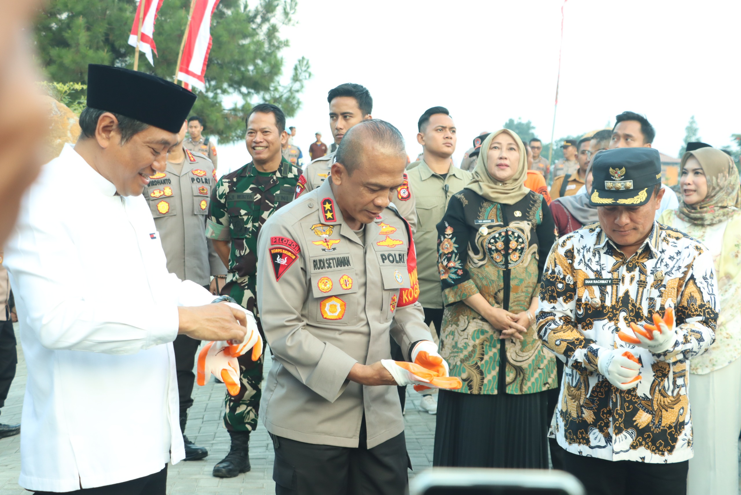 Kapolda Jawa Barat Irjen Pol. Rudi Setiawan, S.I.K., S.H., M.H., bersama Waka Polda Jabar Brigjen Pol. Adi Vivid A.B., S.I.K., M.Hum., M.S.M., Irwasda Polda Jabar Brigjen Pol. Rinto Prastowo, S.I.K., M.H., Anggota DPR RI sekaligus Direktur PT Puspita Group H. Rokhmat Ardiyan, M.M., serta Bupati Kuningan Dr. H. Dian Rachmat Yanuar, M.Si., melaksanakan penanaman bibit pohon Damar di kawasan Arunika Eatery, Kuningan. Kamis, (7/8/2025).Kegiatan ini digelar sebagai wujud kepedulian terhadap lingkungan dengan tujuan meningkatkan penghijauan sekaligus menjaga kelestarian alam. Penanaman pohon Damar dipilih karena memiliki daya serap karbon yang baik dan nilai estetika tinggi, sehingga diharapkan mampu memperindah lingkungan sekitar serta memberi manfaat ekologis jangka panjang.Kapolda Jabar dalam kesempatan tersebut menyampaikan bahwa upaya penghijauan tidak hanya menjadi tanggung jawab pemerintah, tetapi juga membutuhkan peran aktif masyarakat.“Melalui kegiatan ini, kita ingin mengajak semua pihak untuk lebih peduli terhadap alam demi generasi yang akan datang,” ujarnya, Jum’at (8/8/2025)Dengan penanaman pohon ini, diharapkan kawasan Kuningan semakin asri, sejuk, dan berkelanjutan sebagai paru-paru hijau bagi wilayah Jawa Barat.(Lia/Humas Polda Jabar)