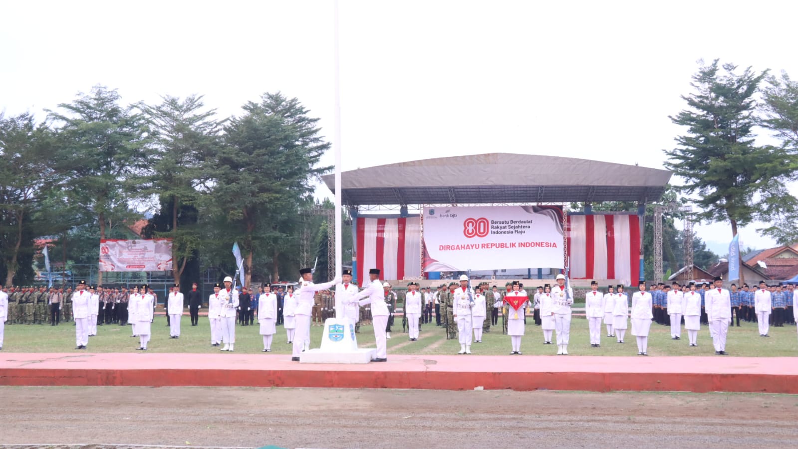 Banjar – Upacara penurunan bendera merah putih dalam rangka memperingati Hari Ulang Tahun (HUT) ke-80 Kemerdekaan Republik Indonesia tingkat Kota Banjar tahun 2025 berlangsung khidmat dan penuh makna di Taman Kota Lapang Bhakti, Minggu petang (17/08/2025).