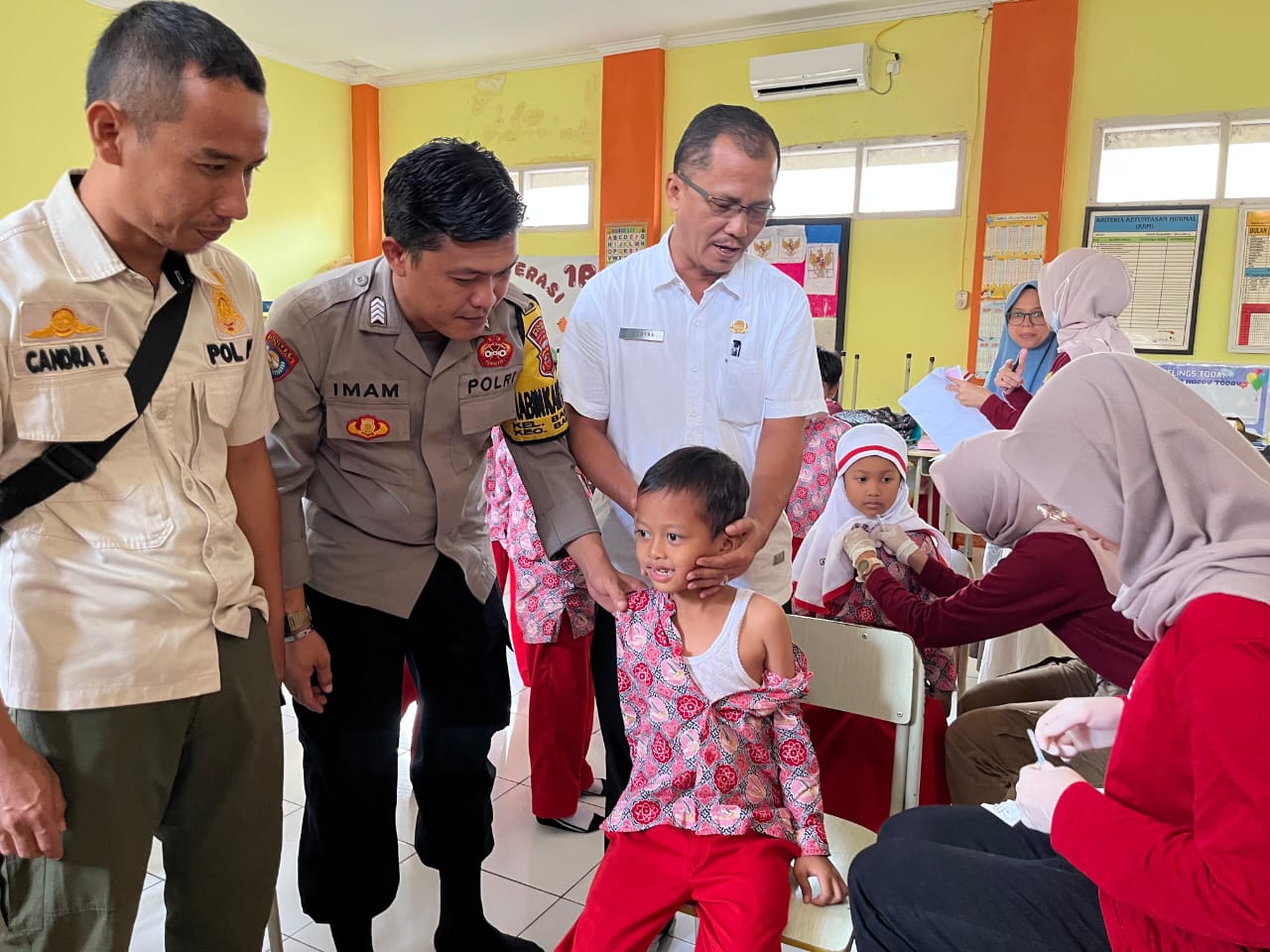 Banjar- Bhabinkamtibmas Kalurahan Banjar Monitoring Bulan Imunisasi Anak Sekolah Dalam rangka mendukung program pemerintah di bidang kesehatan anak, Bhabinkamtibmas Kalurahan Banjar Bripka Imam Wahyudi melaksanakan kegiatan monitoring Bulan Imunisasi Anak Sekolah (BIAS) di tiga Sekolah Dasar, Rabu (20/08/2025) pagi.