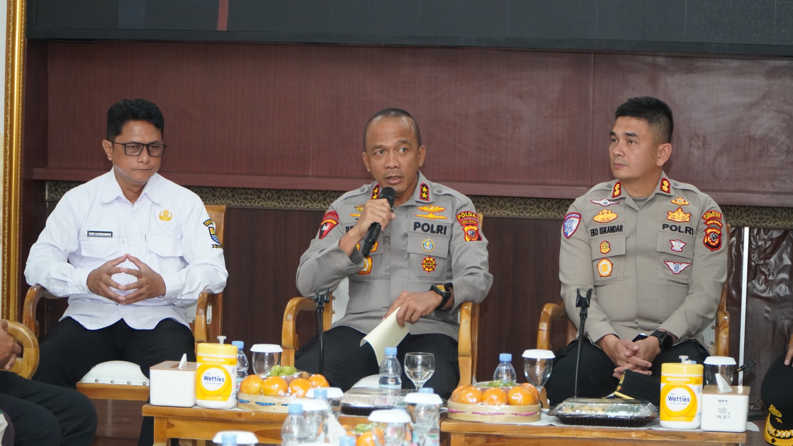 Kepala Kepolisian Daerah (Kapolda) Jawa Barat Irjen Pol Rudi Setiawan, S.I.K., S.H., M.H., melakukan silaturahmi bersama Forum Koordinasi Pimpinan Daerah (Forkopimda) Kota Cirebon, tokoh agama, dan tokoh masyarakat. Kegiatan ini dilaksanakan di Aula Catur Prasetya Polres Cirebon Kota, Jalan Veteran No. 5, Kota Cirebon, Rabu (20/8/2025).Kegiatan silaturahmi tersebut dihadiri langsung oleh Kapolres Cirebon Kota AKBP Eko Iskandar, S.H., S.I.K., M.Si., Wakapolres Kompol Dede Kasmadi, beserta jajaran pejabat utama Polres Cirebon Kota. Hadir pula unsur Forkopimda Kota Cirebon, pejabat TNI, Kejaksaan, serta sejumlah tokoh agama dan masyarakat.Dalam sambutannya, Kapolda Jawa Barat menyampaikan bahwa silaturahmi ini merupakan salah satu bentuk sinergitas antara aparat penegak hukum, pemerintah daerah, serta tokoh masyarakat dalam menjaga stabilitas keamanan dan ketertiban di Kota Cirebon.“Cirebon memiliki nilai sejarah dan budaya yang sangat tinggi. Tugas kita bersama adalah menjaga kondusivitas agar pembangunan daerah berjalan lancar dan masyarakat merasakan rasa aman,” ungkap Kapolda Jabar Irjen Pol Rudi Setiawan.Kapolda Jabar menambahkan, peran tokoh agama dan tokoh masyarakat sangat penting dalam menciptakan situasi yang harmonis di tengah masyarakat. Menurutnya, kolaborasi antara aparat keamanan dengan para ulama dan tokoh masyarakat dapat mencegah potensi konflik serta memperkuat persatuan.“Tokoh agama dan tokoh masyarakat merupakan panutan bagi warga. Kehadiran mereka bisa menjadi penyejuk dan penengah apabila terjadi persoalan di tengah masyarakat. Oleh karena itu, kami sangat berharap sinergi ini terus terjalin,” tutur Kapolda Jabar.Kapolres Cirebon Kota AKBP Eko Iskandar dalam kesempatan yang sama menyampaikan terima kasih atas kunjungan Kapolda Jabar. Ia menegaskan bahwa Polres Cirebon Kota akan terus berkomitmen menjaga keamanan, ketertiban, serta memberikan pelayanan terbaik kepada masyarakat.Selain itu, Forkopimda Kota Cirebon juga menyatakan dukungan penuh terhadap upaya Polri dalam menjaga keamanan. Kolaborasi dengan TNI, pemerintah daerah, dan elemen masyarakat diyakini mampu memperkuat persatuan dan kebersamaan di Kota Cirebon.Kegiatan silaturahmi ini berlangsung penuh keakraban. Acara ditutup dengan doa bersama dan sesi foto bersama sebagai simbol kekompakan antara Forkopimda, aparat keamanan, dan tokoh masyarakat dalam menjaga Cirebon yang aman, damai, dan kondusif.(Lia/Humas Polda Jabar)