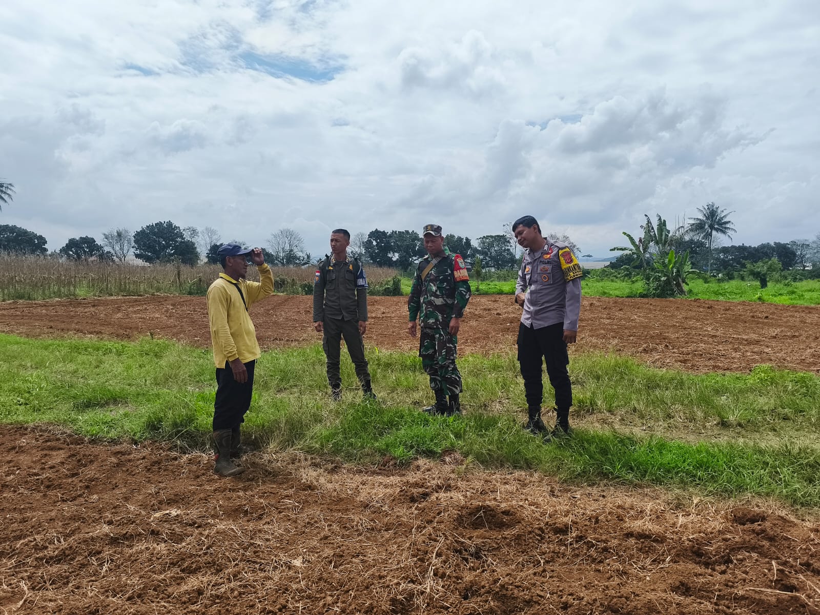 Kegiatan tersebut dilakukan bersama Penyuluh Pertanian Lapangan (PPL) dan pemilik lahan, Bapak Ahmad, dengan luas lahan sekitar 200 bata yang rencananya akan dibuka dan diolah untuk penanaman jagung.