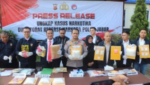 Direktorat Reserse Narkoba Polda Jawa Barat berhasil mengungkap jaringan peredaran narkotika lintas daerah Jakarta–Sukabumi–Bandung. Dalam serangkaian operasi yang dilakukan pada 7 hingga 14 Agustus 2025, Polisi mengamankan empat orang tersangka beserta barang bukti narkotika jenis sabu seberat total 7.004,86 gram dan 298 butir ekstasi.Plh Kabid Humas Polda Jabar Kombes Pol irfan N S.I.K., mengatakan bahwa pengungkapan pertama dilakukan pada 7 Agustus 2025 di Padalarang, Kabupaten Bandung Barat. Polisi menangkap tersangka berinisial H yang kedapatan membawa lima bungkus sabu dengan berat bruto lebih dari 5 kilogram di bagasi motor yang dikendarainya. Dari hasil pemeriksaan, barang haram tersebut diketahui milik seorang bandar berinisial Antoni (DPO).Selanjutnya, pada 9 Agustus 2025, tim menangkap tersangka N di wilayah Cikole, Kota Sukabumi dengan barang bukti sabu seberat 1,7 kilogram. Beberapa hari kemudian, pada 13–14 Agustus 2025, dua tersangka lain berinisial E dan A diamankan di Ngamprah, Kabupaten Bandung Barat, serta di Cibeureum, Kota Sukabumi. Dari keduanya, polisi menyita sabu hampir 200 gram, ekstasi sebanyak 298 butir, serta tambahan sabu seberat 8 gram di kontrakan milik tersangka E.Adapun modus operandi para pelaku adalah mengedarkan sabu dan ekstasi di wilayah Jawa Barat dengan sistem tempel maupun perantara. Tersangka E diketahui bertugas sebagai kurir dengan imbalan Rp. 3 juta per sekali pengambilan, sementara tersangka A berperan sebagai sopir.Direktur Reserse Narkoba Polda Jabar Kombes Pol. Albert RD., S.Sos., S.I.K., M.Si mengungkapkan bahwa Total barang bukti sabu yang berhasil disita setara dengan 35.024 jiwa yang terselamatkan dari penyalahgunaan narkoba, dengan asumsi satu gram sabu digunakan oleh lima orang. Para tersangka dijerat Pasal 114 ayat (2) jo Pasal 112 ayat (2) UU RI Nomor 35 Tahun 2009 tentang Narkotika, dengan ancaman pidana maksimal hukuman mati atau penjara seumur hidup serta denda hingga Rp10 miliar.(Lia/Humas Polda Jabar)
