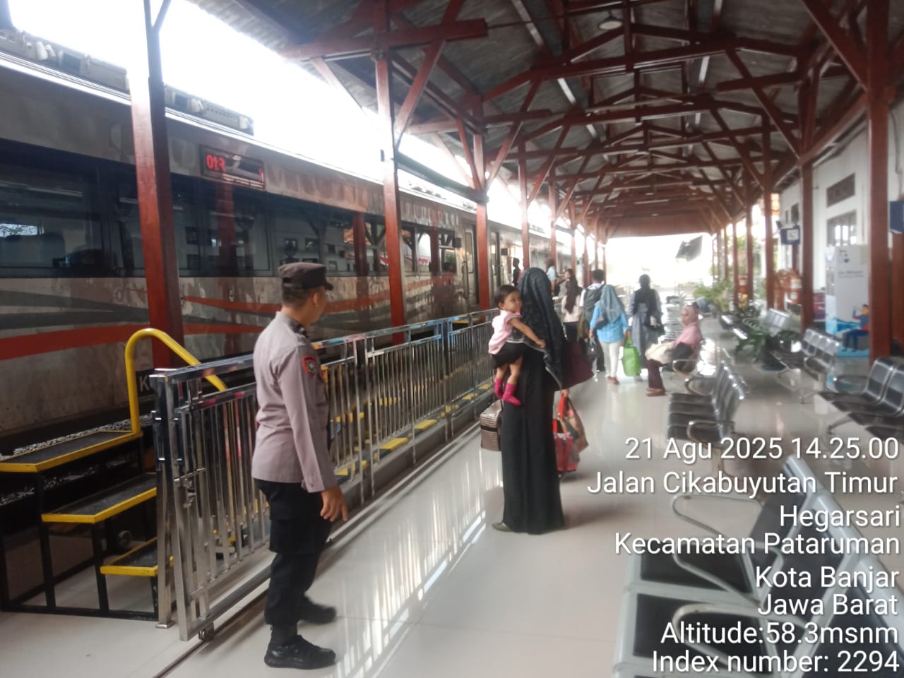 Banjar – Dalam rangka menjaga situasi kamtibmas yang aman dan kondusif, Bhabinkamtibmas Kelurahan Hegarsari Polsek Pataruman Polres Banjar, Aipda One Suherman, melaksanakan kegiatan silaturahmi dan sambang kepada anggota Satpam Stasiun Banjar sekaligus melakukan monitoring aktivitas para penumpang PT KAI. Kegiatan tersebut dilaksanakan pada Kamis (21/08/2025) bertempat di Lingkungan Cikabuyutan Barat, RT 01 RW 09, Kelurahan Hegarsari, Kecamatan Pataruman, Kota Banjar.